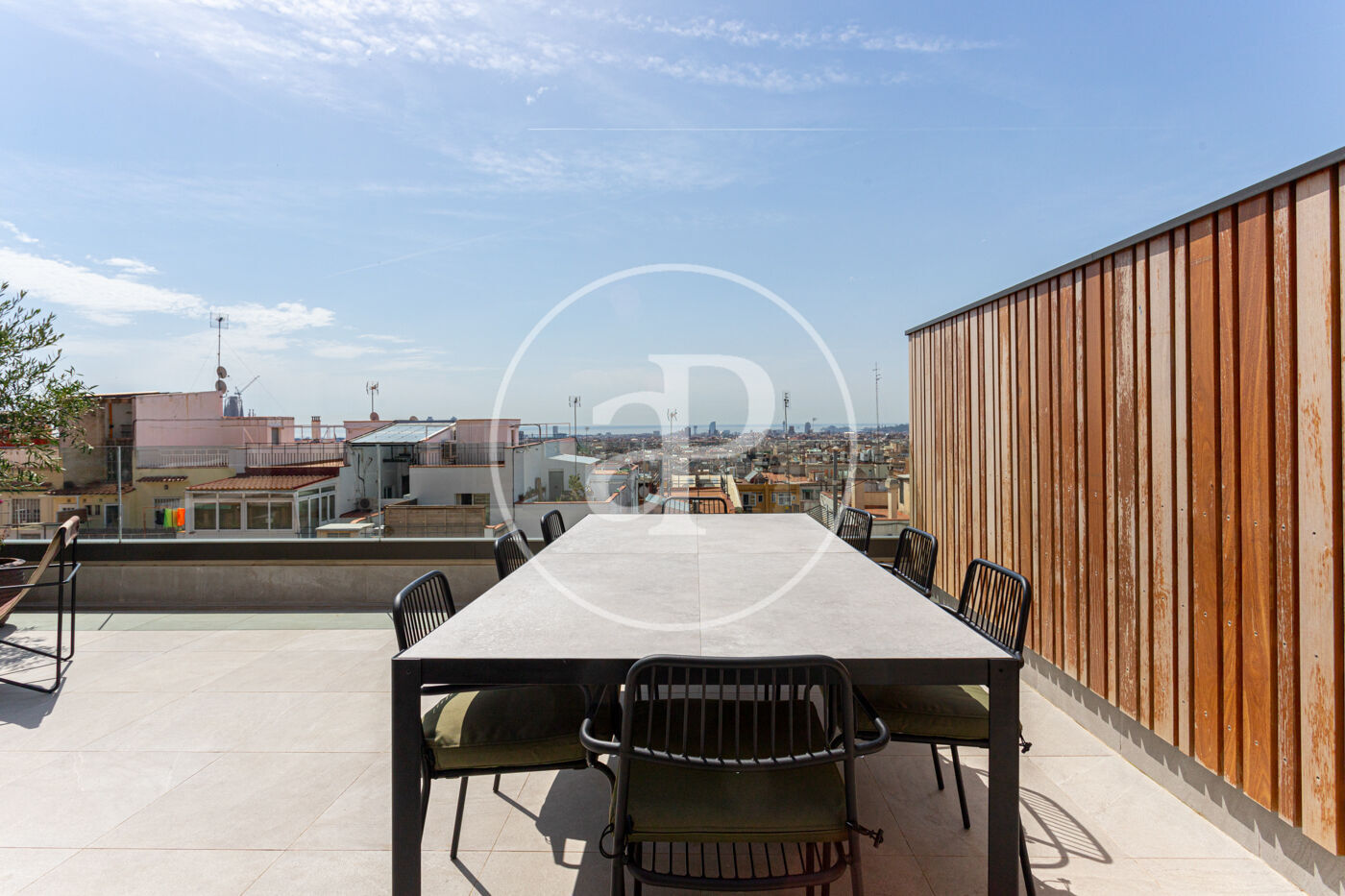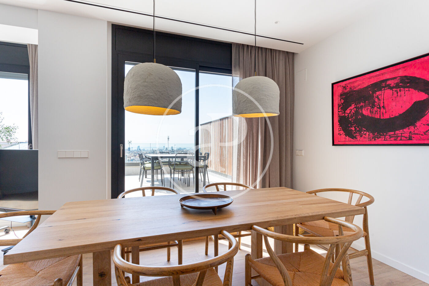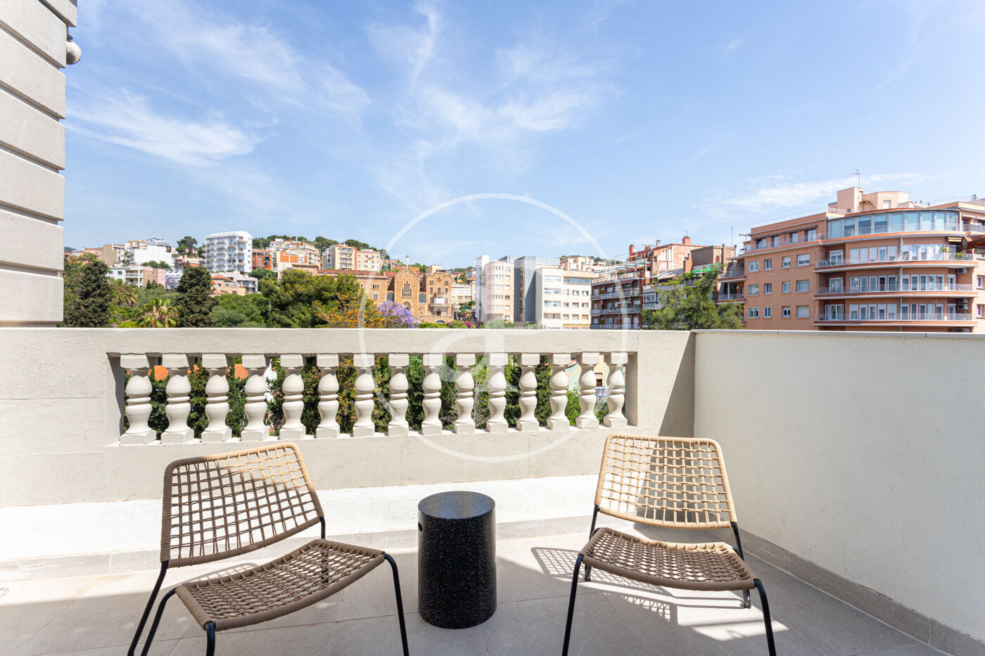 Nos encontramos en la zona alta del barrio de Gràcia, en frente al parque Jardins de Menéndez i Pelayo y a tan solo 500 metros del Park Güell, con un magnífico ático de lujo con unas vistas espectaculares a toda la ciudad.