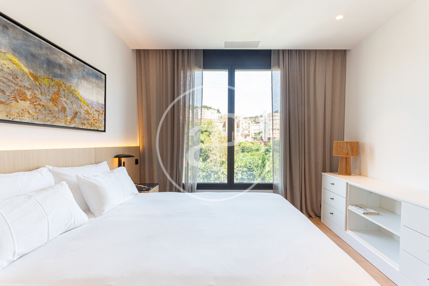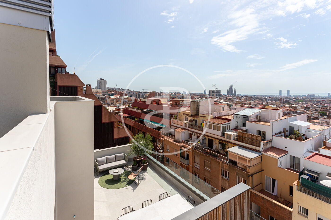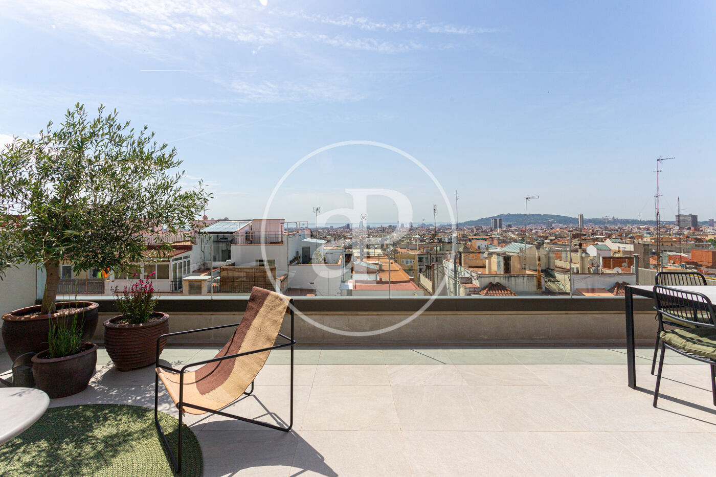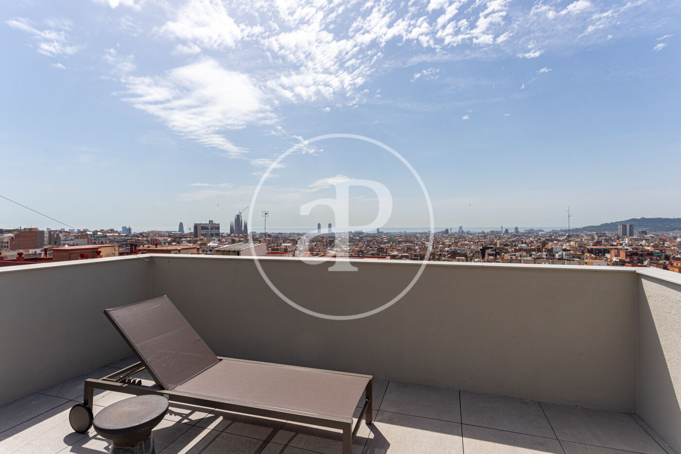 Nos encontramos en la zona alta del barrio de Gràcia, en frente al parque Jardins de Menéndez i Pelayo y a tan solo 500 metros del Park Güell, con un magnífico ático de lujo con unas vistas espectaculares a toda la ciudad.