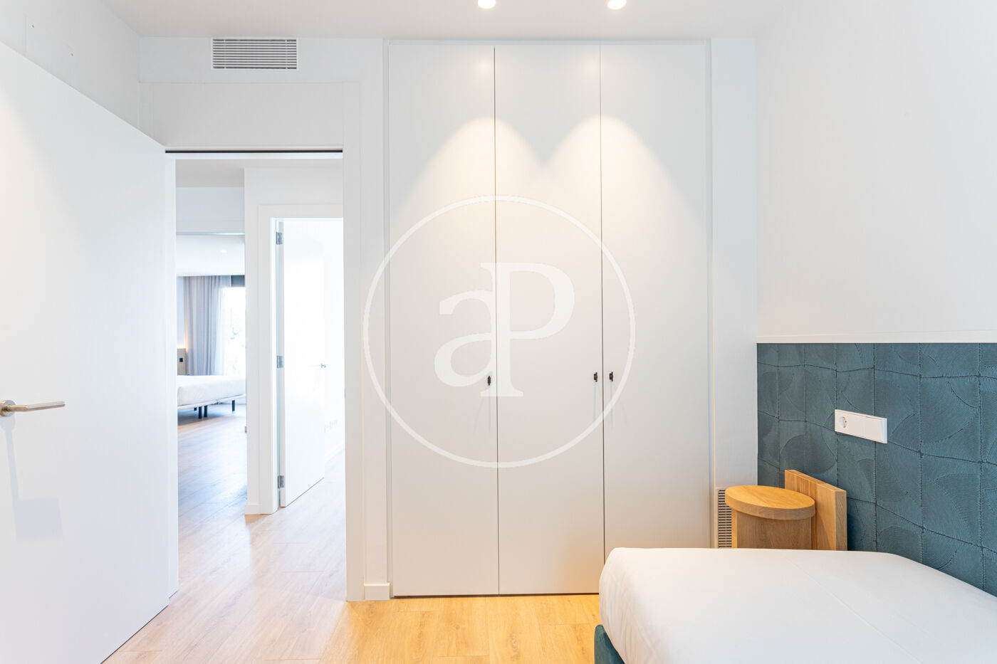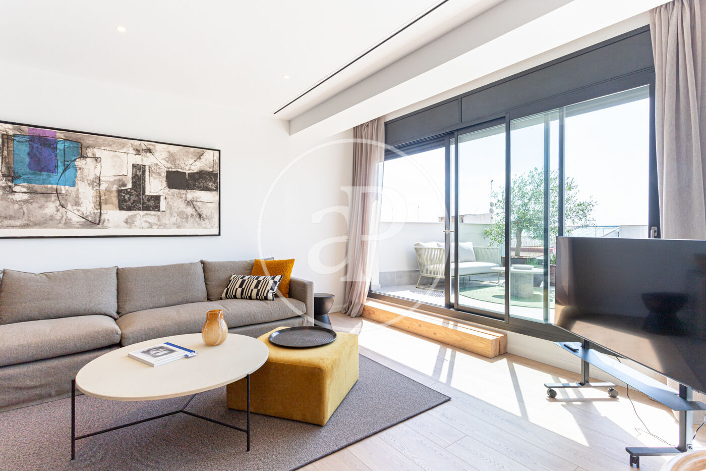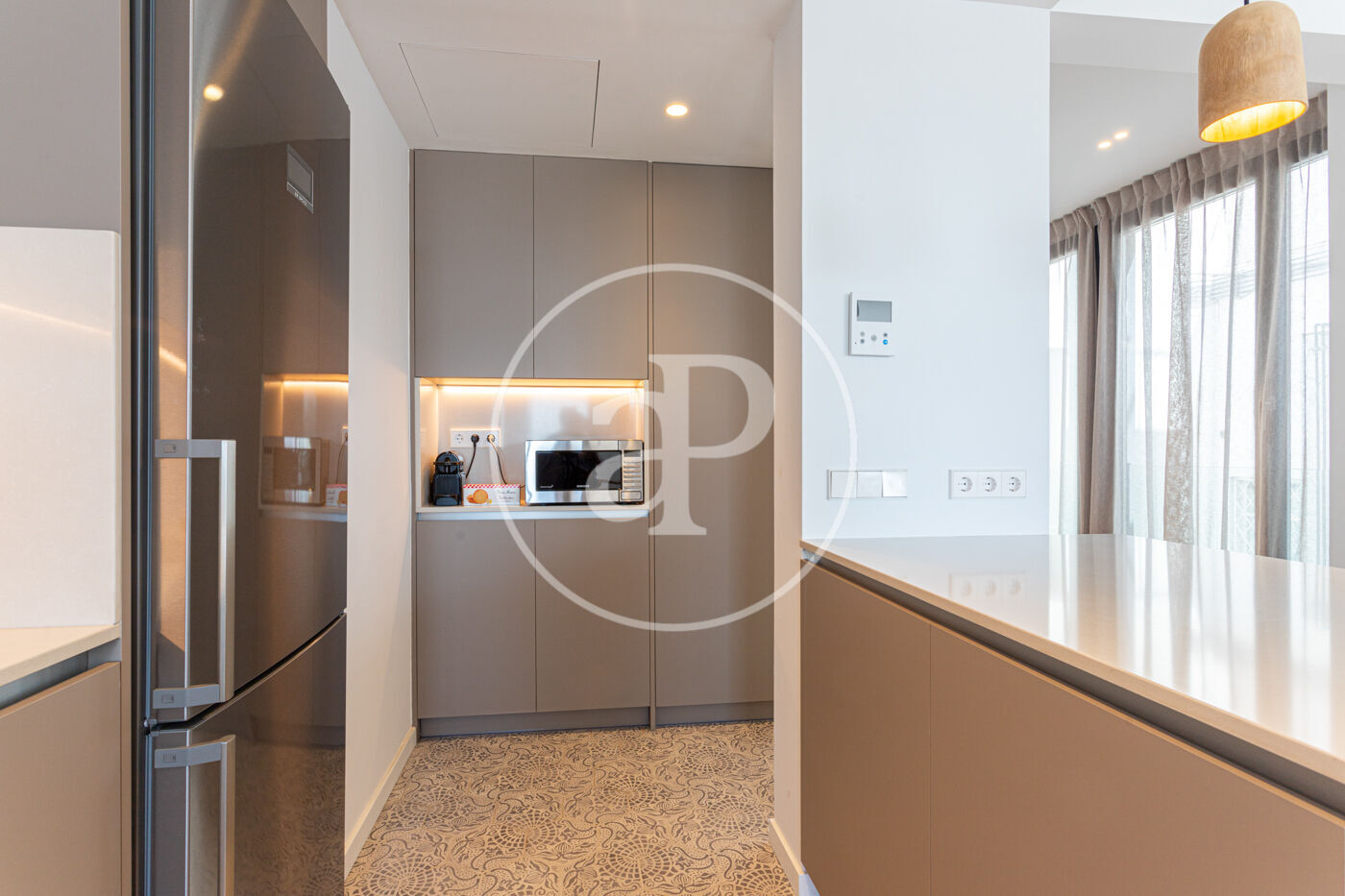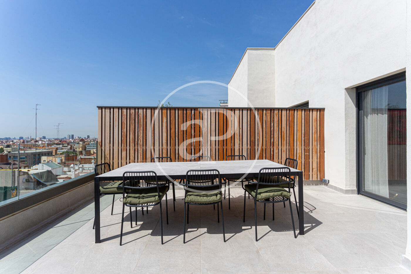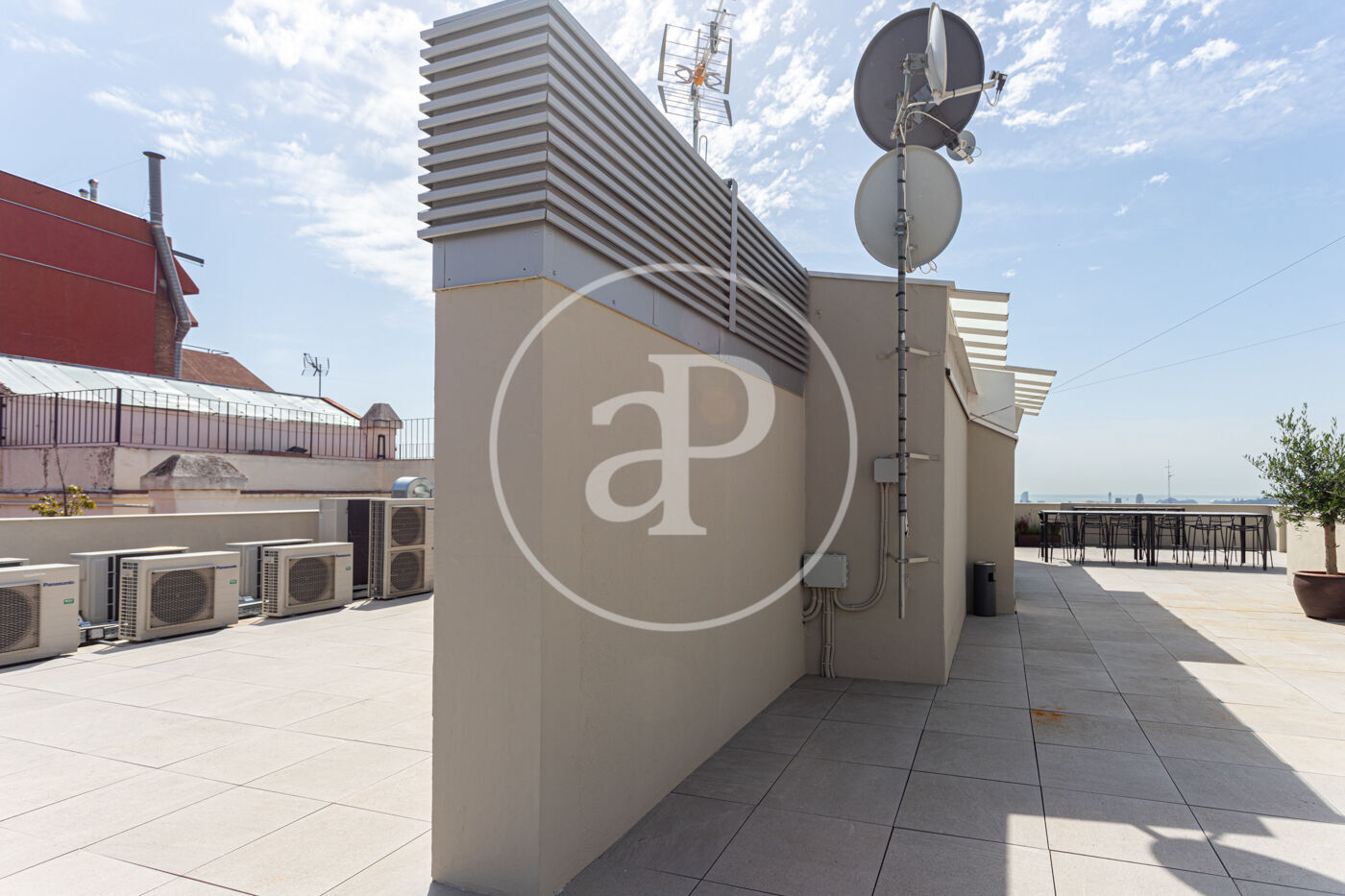 El edificio dispone de una terraza rooftop con mesas, tumbonas y chill-out, gimnasio y parking para bicicletas y patinetes.