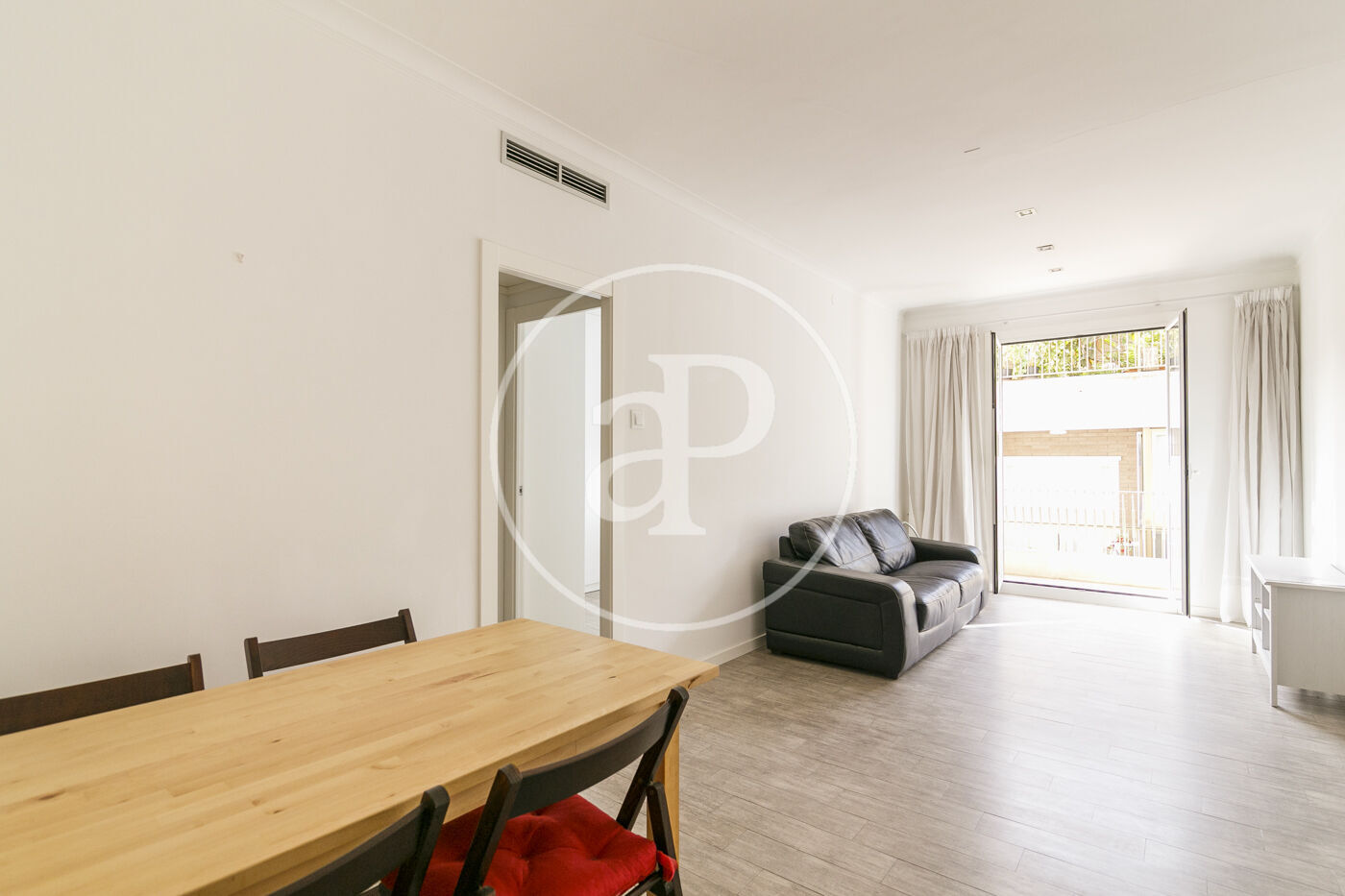 ALQUILER DE LARGA ESTANCIA, DISPONIBLE EN DICIEMBRE Piso de obra nueva a estrenar de 60 m² interiores + 20 m² de terrazas privativas, ubicado en una de las zonas más auténticas y renovadas de Barcelona. La vivienda destaca por su luz natural, su diseño moderno y su excelente distribución, pensada para ofrecer el máximo confort a parejas o a dos profesionales que quieran compartir piso. El espacio principal combina un salón-comedor amplio y acogedor con cocina abierta integrada en un único ambiente, equipada con electrodomésticos nuevos y acabados de alta calidad. Los suelos de madera, la carpintería moderna y los materiales cálidos aportan una sensación de hogar muy agradable. El piso dispone de dos habitaciones dobles exteriores con armarios empotrados; una de ellas con baño en suite, además de un segundo baño completo. Tanto el salón como los dormitorios tienen salida directa a una terraza a pie de piso, perfecta para relajarse al aire libre. La vivienda cuenta, además, con una segunda terraza privativa de 20 m² situada en la planta superior, creando un espacio ideal para teletrabajar, tomar el sol o recibir visitas en un entorno privado. La climatización por aerotermia, la domótica instalada (incluyendo persianas motorizadas), la iluminación LED de bajo consumo y los cerramientos de alta eficiencia garantizan confort térmico y eficiencia energética durante todo el año. El piso se entrega con alarma y sistema de seguridad incluidos, aportando máxima tranquilidad al inquilino. La finca, recién construida y con pocos vecinos, ofrece un ambiente calmado y privado, y dispone de ascensor hasta la terraza superior. Situado en Poble-Sec, un barrio que conserva el auténtico espíritu de Barcelona, con calles llenas de vida local y una amplia oferta gastronómica y cultural. Su proximidad a Montjuïc lo convierte en una de las zonas más agradables para quienes buscan combinar barrio, naturaleza y ciudad. La vivienda está perfectamente conectada. A solo unos pasos de varias paradas de metro y autobús; Parking SABA justo al lado; a 15 minutos del Aeropuerto de Barcelona y 15 minutos caminando a Plaza Catalunya. A pocos minutos de los jardines de Montjuïc, el MNAC, el Teatre Grec y zonas verdes ideales para desconectar Una oportunidad única de vivir en un piso de obra nueva con prestaciones de alto nivel, en una zona céntrica, bien comunicada y con una calidad de vida excepcional.* En cumplimiento de la Ley 12/2023 y la Llei 18/2007 informamos que:Índice de R.P.LL: 14,49 € / m2 Respecto a la presente propiedad no existe certificado informativo estatal de referencia de precios de alquiler