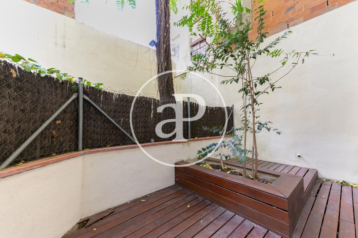 En el barrio de Gracia, rodeado de innumerables servicios como mercado, tiendas de barrio, colegios, gimnasios y muy cercano a diferentes tipos de transporte público, encontramos este piso loft de 57m2 totalmente reformado y amueblado con una agradable terraza de 21m2 aproximadamente.