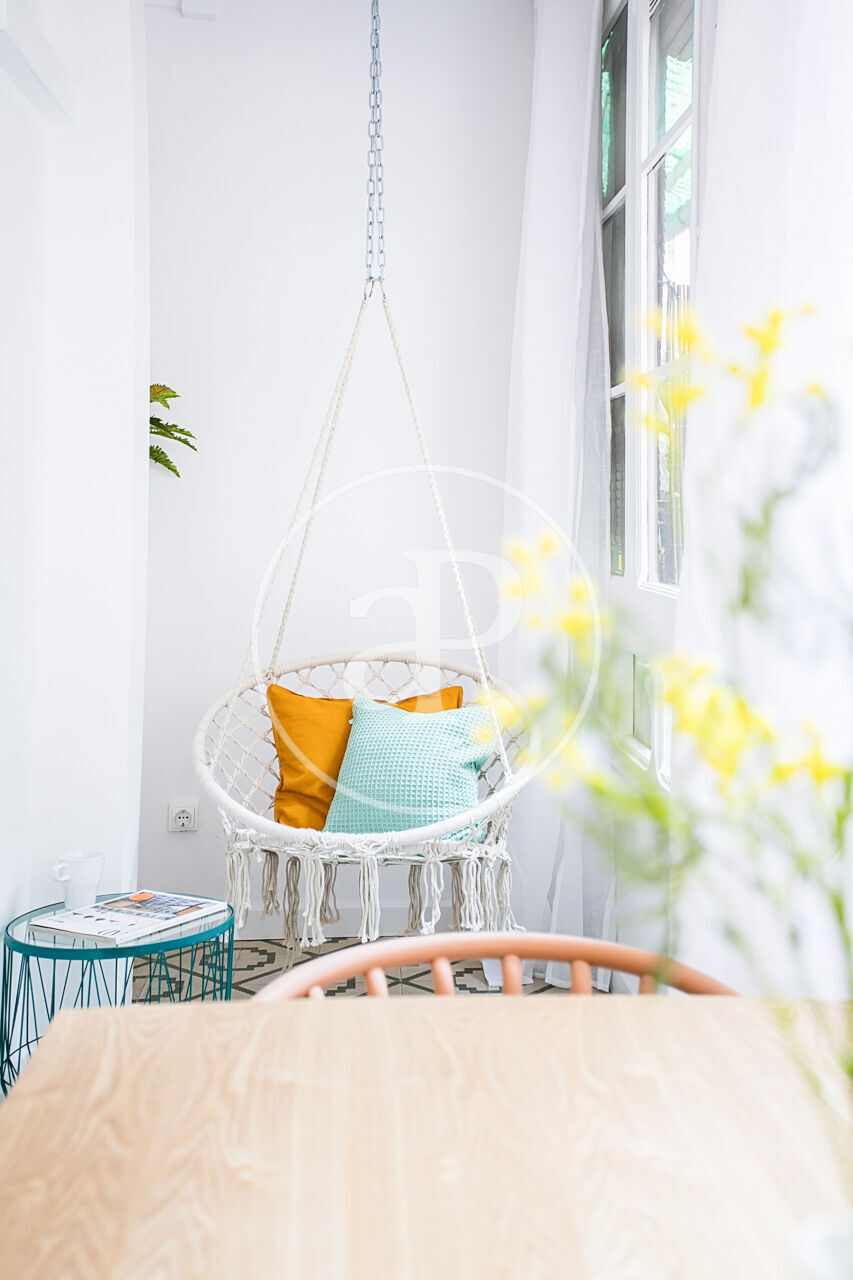Los 93m2 se distribuyen en 3 habitaciones dobles, dos baños completos. Un amplio salón comedor con vistas a la terraza interior de 21 m2 y una cocina independiente equipada y una zona de aguas completan la disposición de la vivienda.