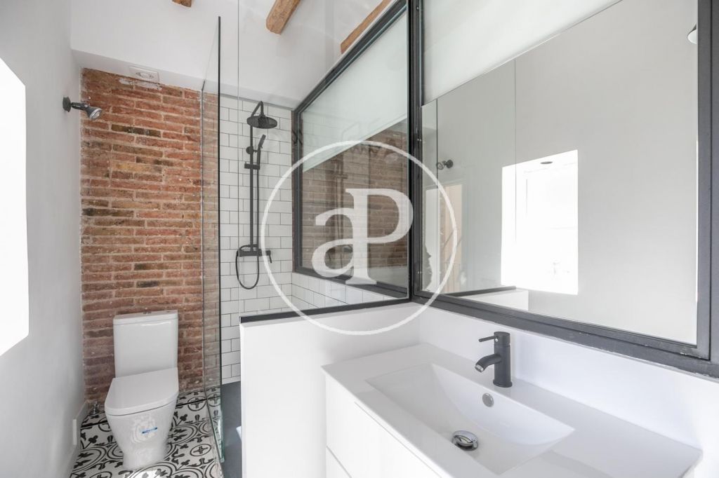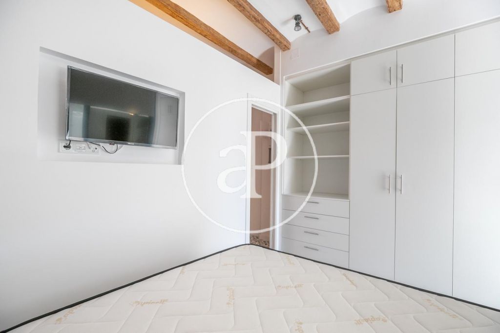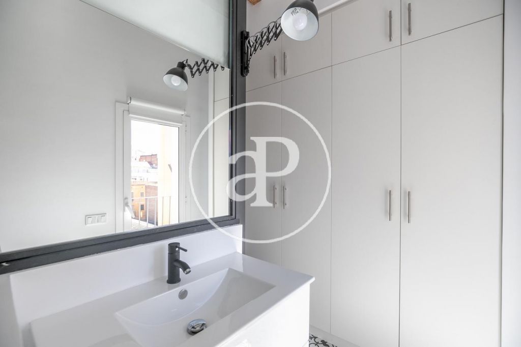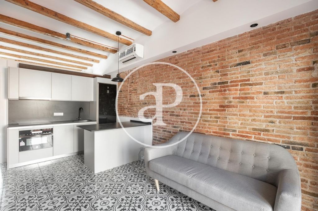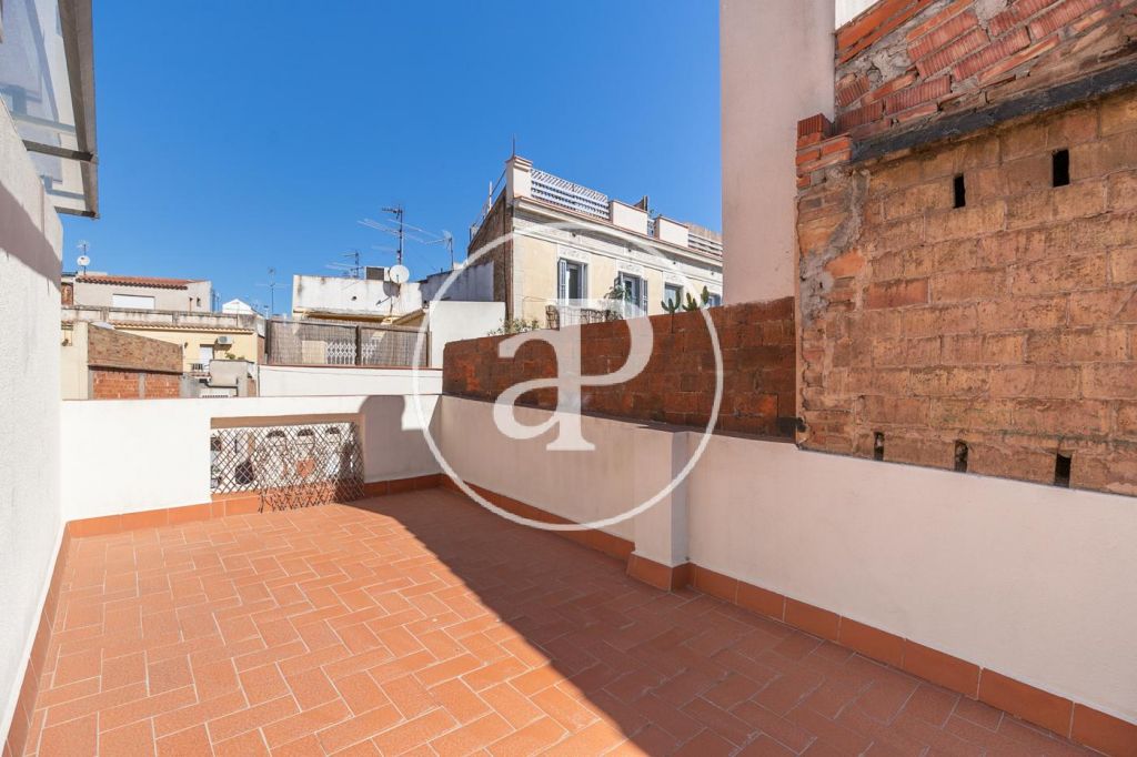 Fabuloso piso en alquiler en Gracia, en una zona tranquila junto a la calle Bailén. Está cerca del Paseo de Gracia y muy bien comunicado con el transporte público. Es un tercer piso exterior a dos vientos, sin ascensor y muy luminoso. La vivienda está completamente amueblada con elementos exclusivos y con acabados de calidad. El salón muy agradable tiene acceso a un balcón. Tiene persianas eléctricas de seguridad, iluminación LED y bomba de aire frío/calor. La cocina está completamente equipada con frigorífico y lavavajillas así como lavadora. Dispone de una habitación doble con balcón y con armarios empotrados así como de una cama con arcón para almacenaje y una práctica zona de trabajo. En la parte de arriba hay una terraza de 50m2 de uso privativo. Es una vivienda de diseño y funcional en un entorno agradable, lista para entrar a vivir.