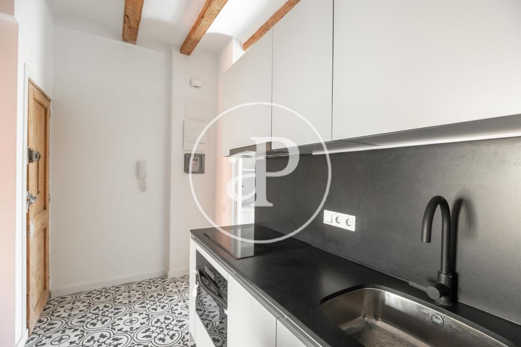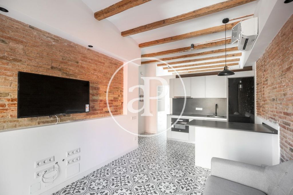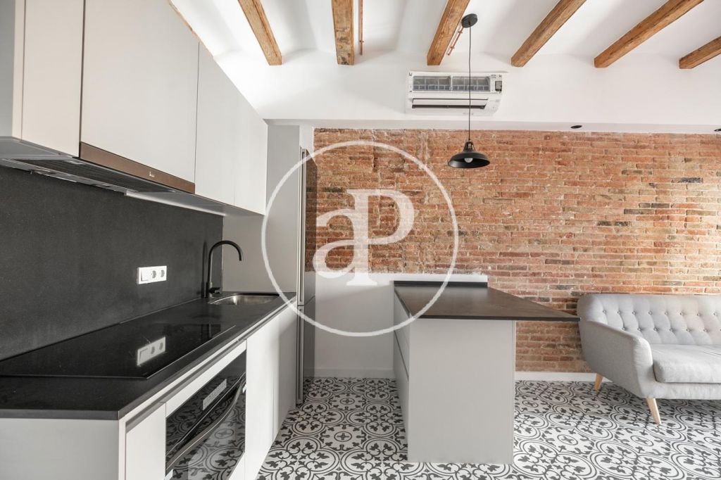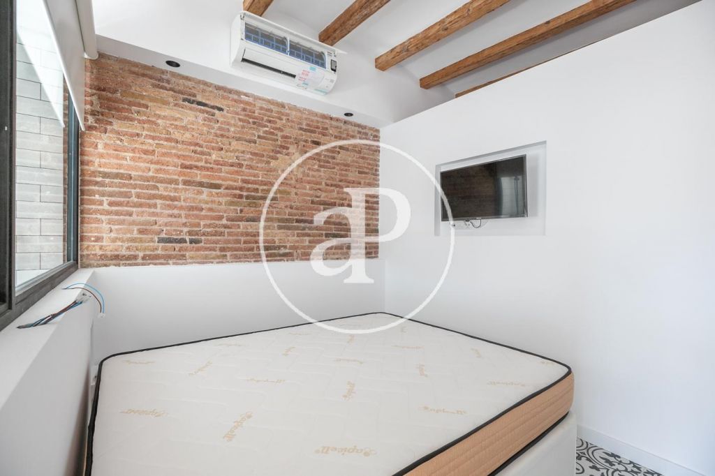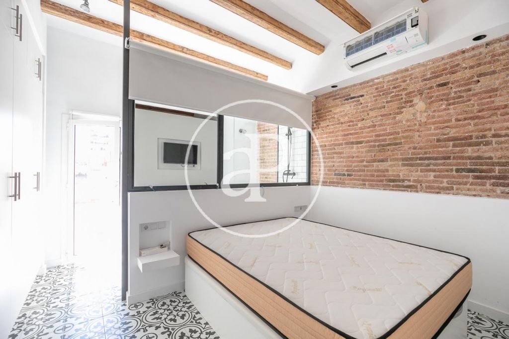 Fabuloso piso en alquiler en Gracia, en una zona tranquila junto a la calle Bailén. Está cerca del Paseo de Gracia y muy bien comunicado con el transporte público. Es un tercer piso exterior a dos vientos, sin ascensor y muy luminoso. La vivienda está completamente amueblada con elementos exclusivos y con acabados de calidad. El salón muy agradable tiene acceso a un balcón. Tiene persianas eléctricas de seguridad, iluminación LED y bomba de aire frío/calor. La cocina está completamente equipada con frigorífico y lavavajillas así como lavadora. Dispone de una habitación doble con balcón y con armarios empotrados así como de una cama con arcón para almacenaje y una práctica zona de trabajo. En la parte de arriba hay una terraza de 50m2 de uso privativo. Es una vivienda de diseño y funcional en un entorno agradable, lista para entrar a vivir.