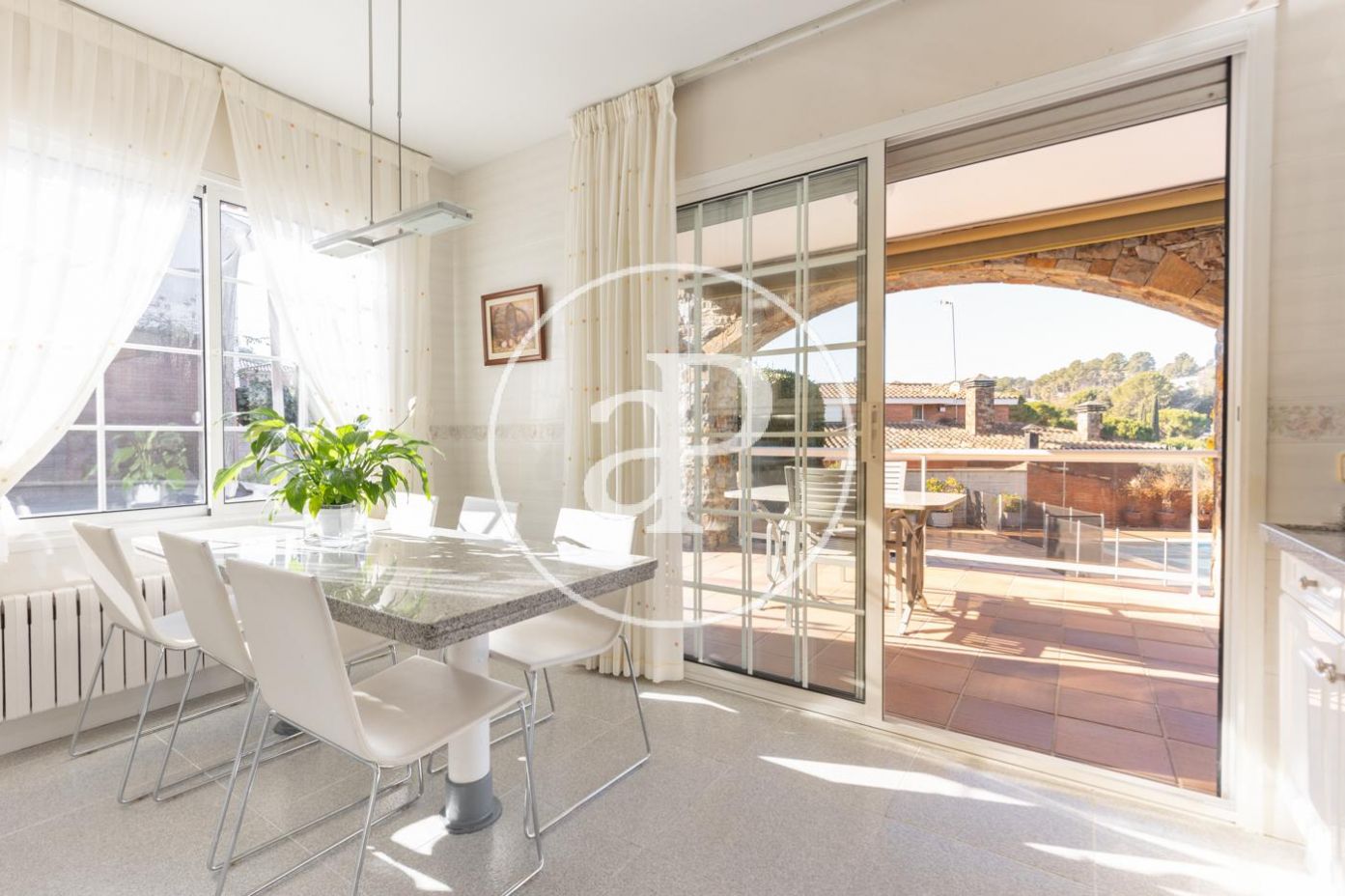 Casa unifamiliar a cuatro vientos de 750m2 construidos en parcela plana de 1.601m2, de excelente construcción y cuidado mantenimiento con 7 amplias habitaciones exteriores, 5 de ellas en planta, a 12 minutos a pie de la estación de tren (FGC-Bellaterra) y del centro del pueblo.