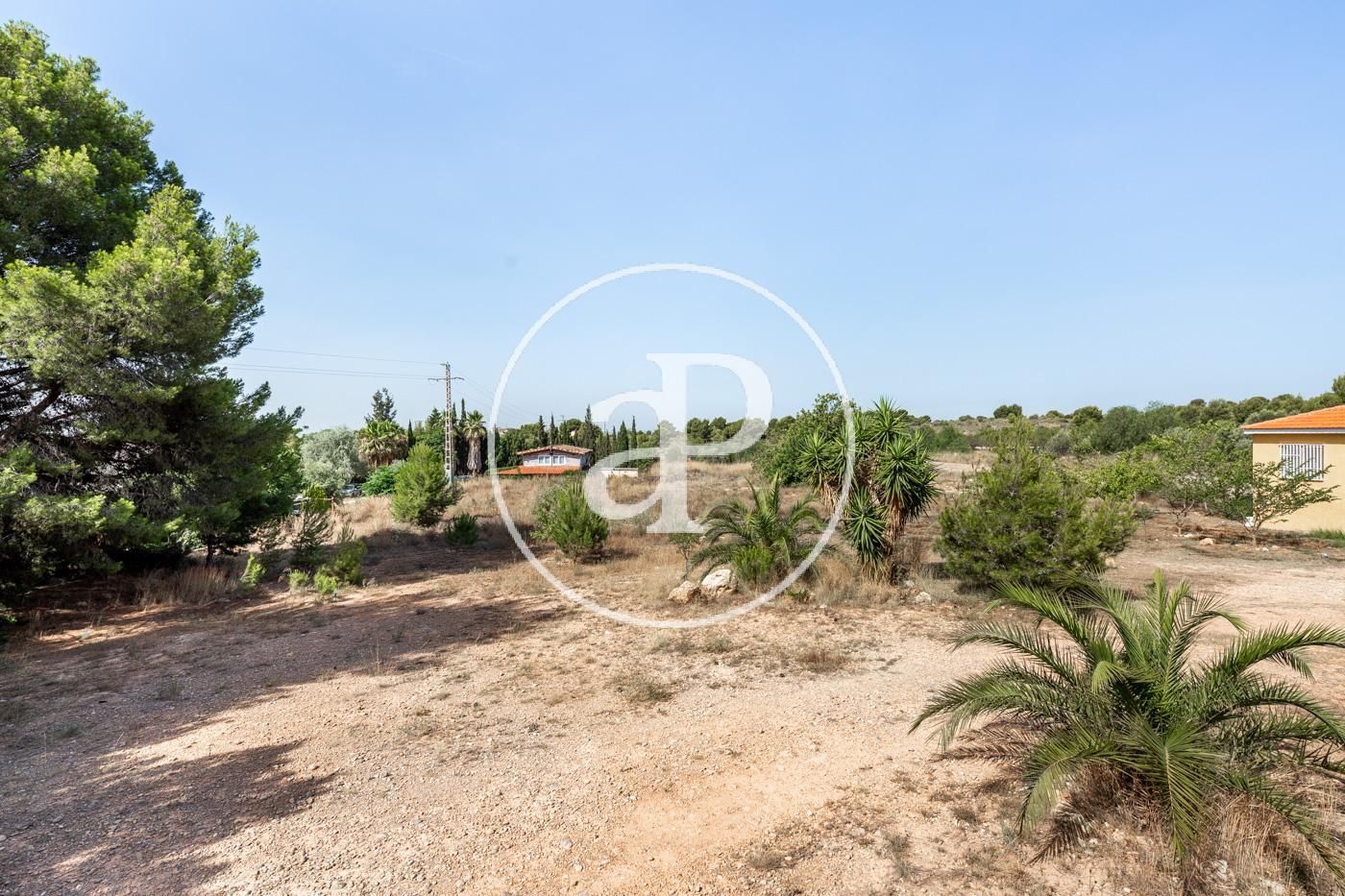 Parcela de 10000 m² con jardín, zona de paellero, terraza y piscina.