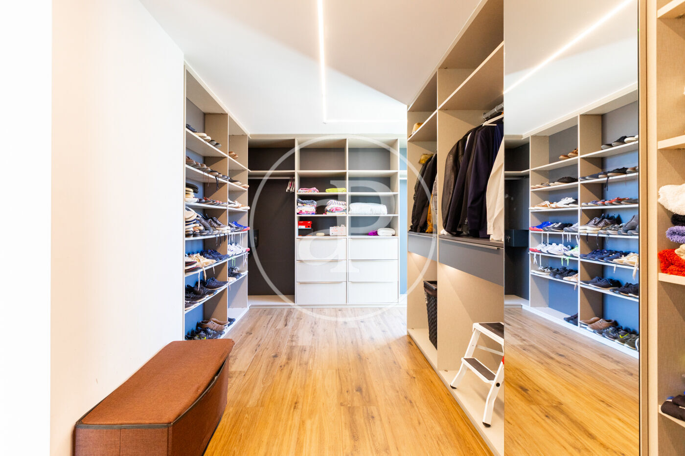 Se accede a las tres plantas por una escalera de hierro diseñada expresamente, pero también se puede acceder a través del ascensor. Al subir a la zona de noche, encontramos cuatro habitaciones dobles y tres baños. La habitación principal es de gran tamaño, con un muro de piedra, un espacio con bañera, un gran vestidor y baño completo en suite. En esta planta, también encontramos una terraza-solárium con zona de relax.