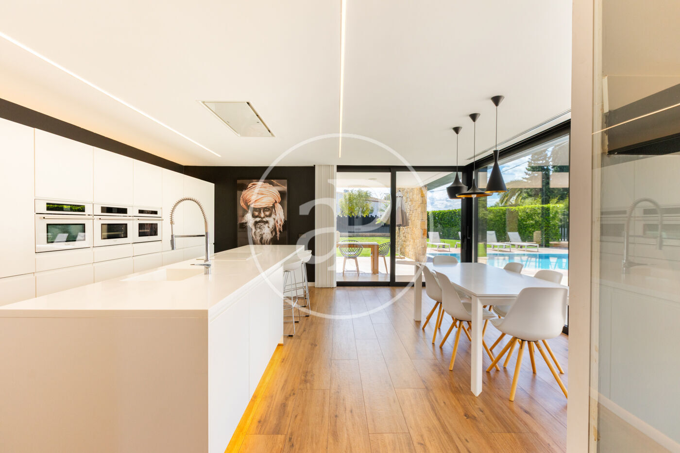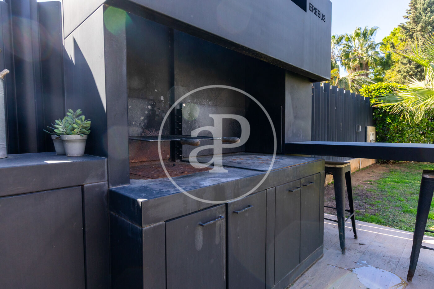 El jardín tiene una orientación idónea y está muy bien mantenido. Además, la parcela es esquinera y tiene gran privacidad. La piscina es autolimpiable. La zona de barbacoa, completamente diseñada, no le falta detalle.