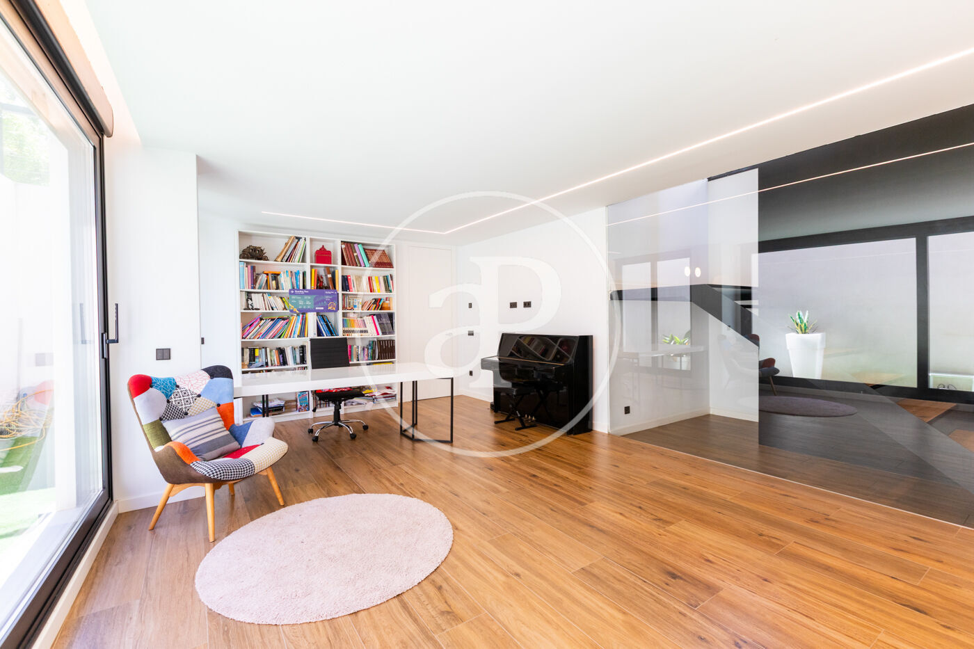 Chalet Independiente en Monteclaro – Exclusividad, Privacidad y Estilo de Vida Premium en Pozuelo de Alarcón Vivienda con encanto, gran parcela, distribución excepcional y jardín centenario en una de las urbanizaciones más exclusivas de Madrid. Ubicada en el corazón de Monteclaro, en Pozuelo de Alarcón, esta espectacular propiedad independiente combina amplitud, privacidad y entorno natural con excelentes conexiones a Madrid capital y servicios de primer nivel. Características Principales:     •    Parcela de casi 2.000 m²     •    Vivienda de aproximadamente 450 m² construidos     •    Orientación sur: luz natural todo el día     •    Distribución en 2 cómodas plantas     •    Urbanización cerrada con seguridad 24h y control de accesos     •    Jardín consolidado con flora centenaria y piscina privada     •    Garaje para varios vehículos (interior y exterior  Distribución: Planta principal:     •    Elegante recibidor de entrada     •    Gran salón principal con varios comedores y zonas de estar, conectados al exterior mediante un amplio frente acristalado con vistas al jardín     •    Cocina independiente completamente equipada     •    1 dormitorio con baño en suite     •    1 aseo de cortesía Primera planta:     •    5 dormitorios (dos de ellos con acceso directo a una amplia terraza)     •    2 baños completos independientes     •    Amplias estancias, techos altos (más de 3 metros) y ventanas en todas las habitaciones, lo que aporta luminosidad y una gran sensación de amplitud Zona exterior:     •    Jardín privado con vegetación histórica y consolidada     •    Piscina privada rodeada de zonas verdes     •    Cobertizos, pozo, bodega y espacios de almacenamiento adicionales     •    Acceso y zonas de aparcamiento amplias para varios vehículos Extras y posibilidades de reforma:     •    Calefacción actual por gas propano     •    Proyecto de reforma incluye posibilidad de instalar aerotermia, sistema de domótica y mejoras de eficiencia energética  Ubicación y entorno: Monteclaro es una urbanización cerrada y con vigilancia 24h, reconocida por su alto nivel de seguridad, privacidad y calidad de vida. Rodeada de zonas verdes, instalaciones deportivas, club social con piscinas, pistas, cafetería y restaurante. Muy cerca de:     •    Colegios internacionales como Everest School     •    Universidades como Francisco de Vitoria y Universidad de Somosaguas     •    Centros médicos de prestigio: Hospital Puerta de Hierro, Clínica Quirón     •    Centros deportivos: David Lloyd, campo de golf     •    Centros comerciales, supermercados y servicios     •    Excelentes accesos a M-40, M-50, M-516 Una propiedad ideal para familias que buscan amplitud, naturaleza, seguridad y conexión con Madrid sin renunciar al confort y la calidad. ¿Te imaginas vivir aquí?