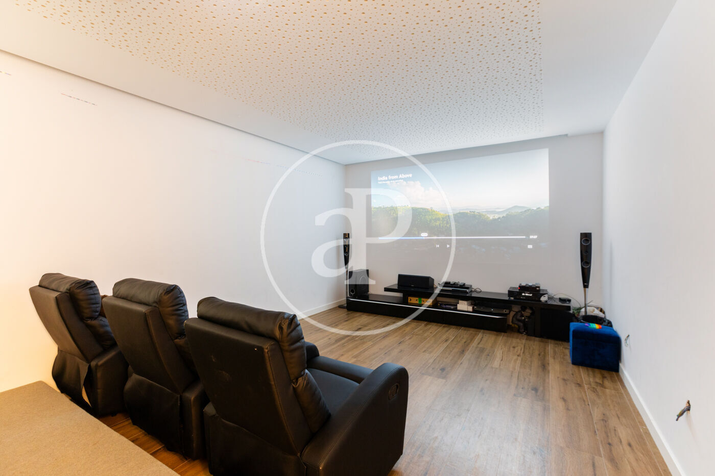 Al acceder a la planta sótano, nos encontramos con una zona multifuncional, con mucha luz exterior gracias a un patio inglés acristalado. Llama la atención una bonita bodega instalada en la pared, acristalada y climatizada. Además, dispone de una habitación de invitados con baño completo, sala de cine, gimnasio y dos habitaciones que admitirían diferentes usos. La zona de garaje cuenta con una puerta doble automatizada y tiene capacidad para dos vehículos.