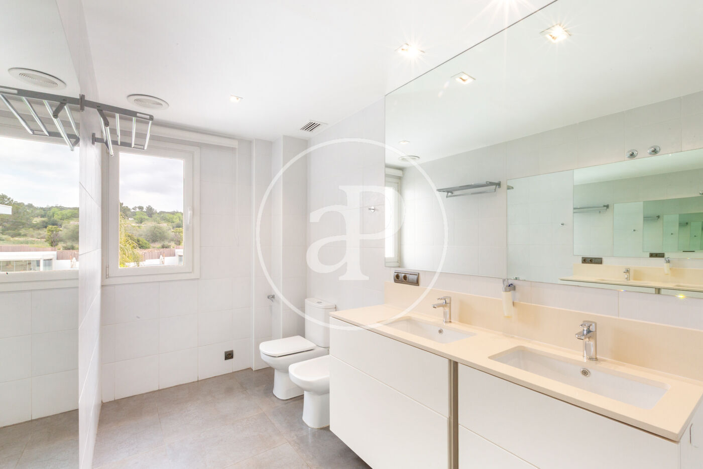 La vivienda cuenta con 4 amplios dormitorios y 3 baños completos, destacando una espectacular suite principal con vestidor y baño en suite. Las estancias privadas disfrutan de vistas abiertas al entorno natural, ofreciendo una sensación de calma y bienestar.