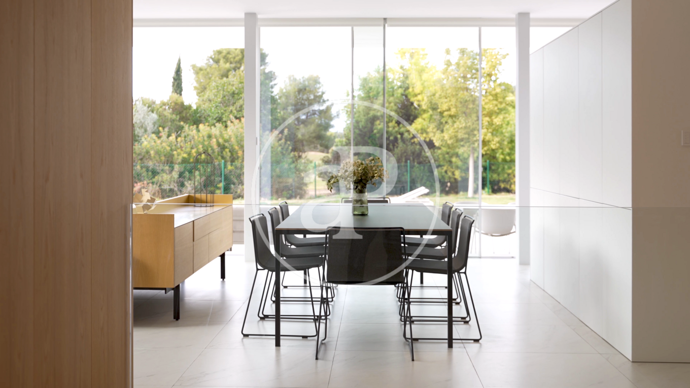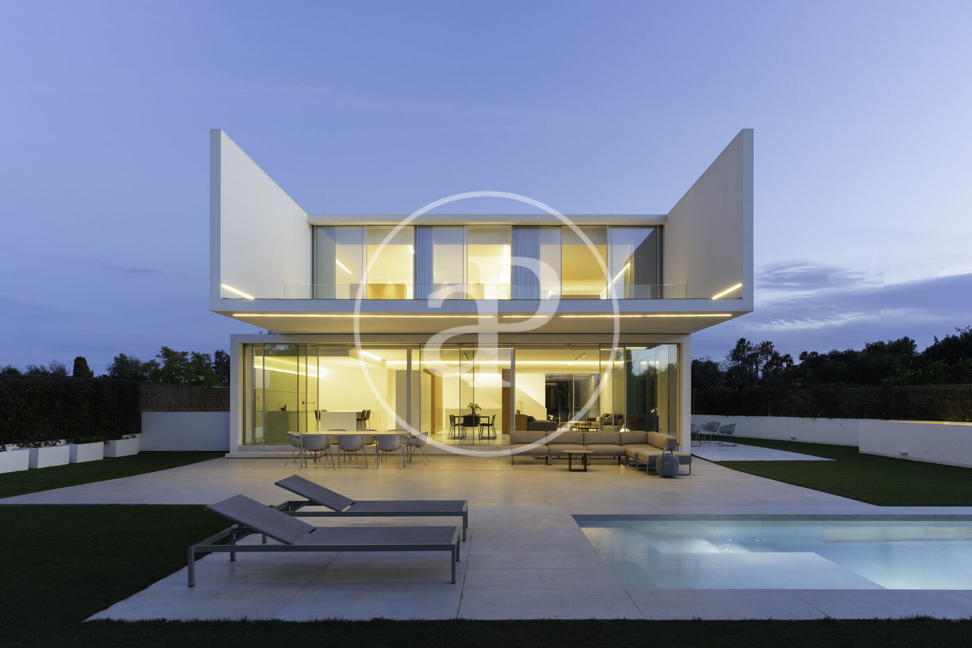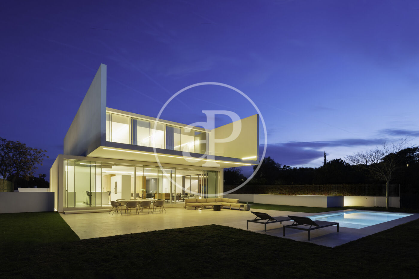 Vivienda Unifamiliar Aislada ubicada en la exclusiva Urbanización Torre en Conill en Bétera, junto al Campo del Golf Escorpión. La parcela de forma rectangular, con sus extremos en Calle Rosinyol (sur-este), Zona Verde (sur) y Campo de Golf (nor-oeste), tiene una superficie de 900,00m2.