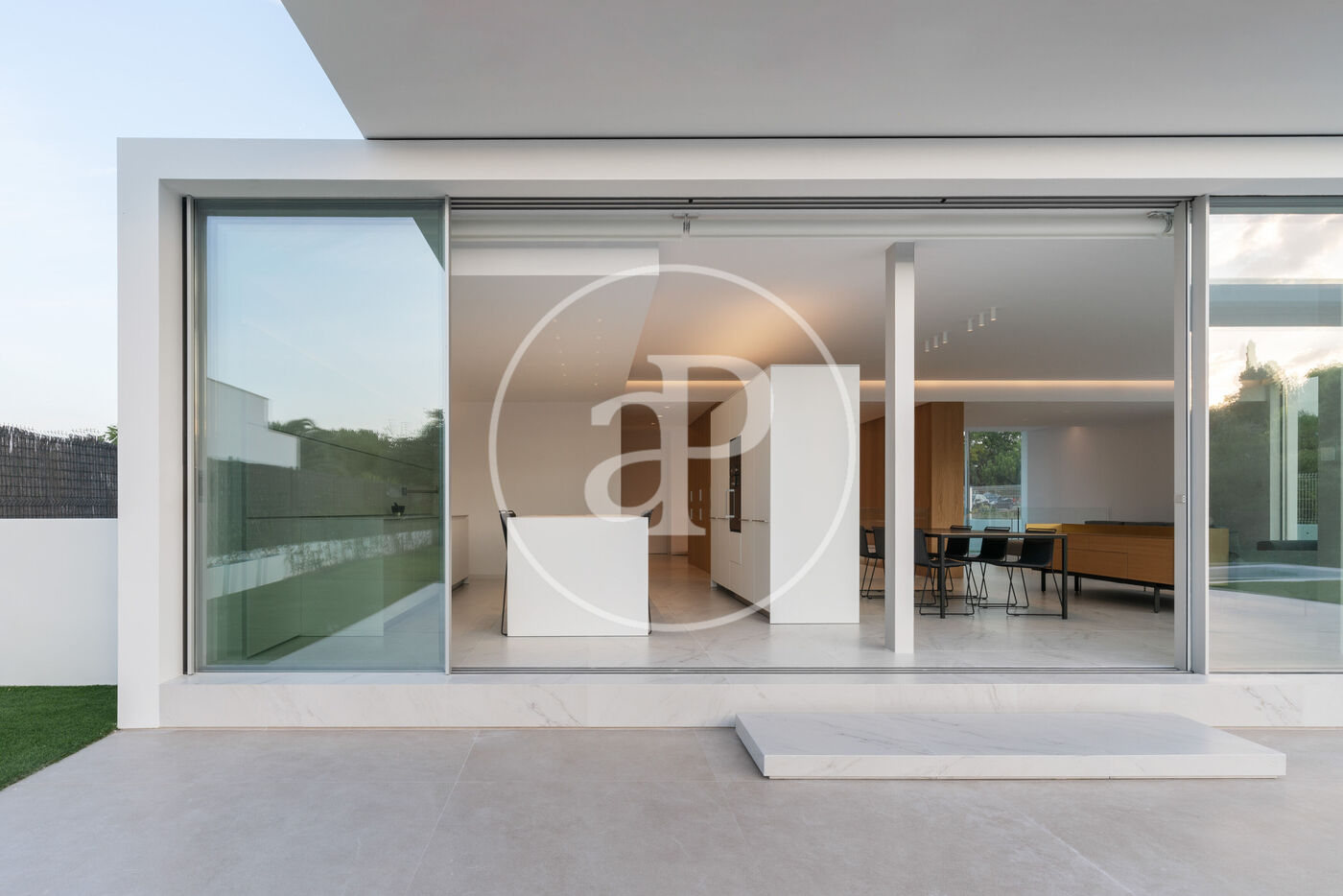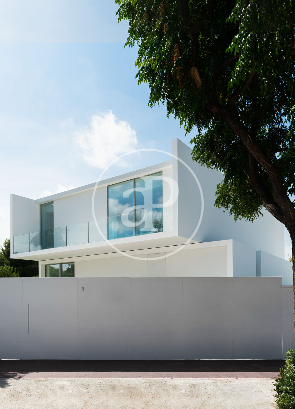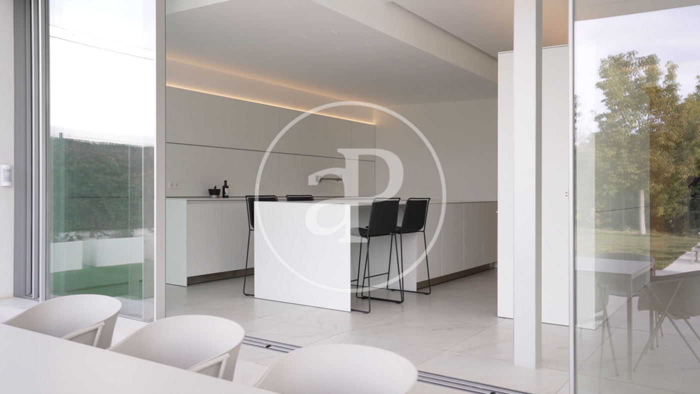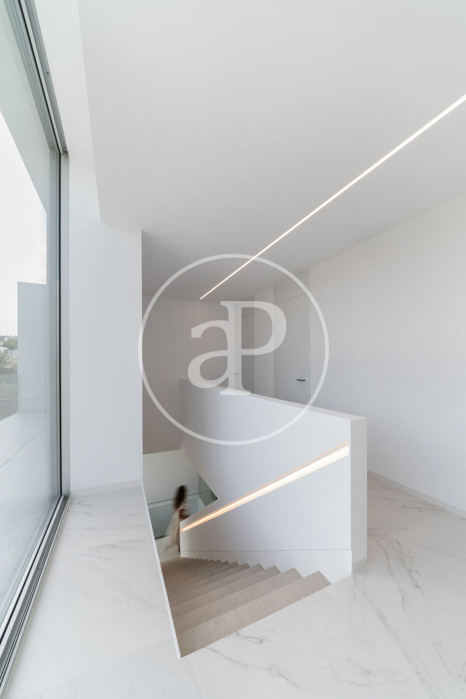 Vivienda Unifamiliar Aislada ubicada en la exclusiva Urbanización Torre en Conill en Bétera, junto al Campo del Golf Escorpión. La parcela de forma rectangular, con sus extremos en Calle Rosinyol (sur-este), Zona Verde (sur) y Campo de Golf (nor-oeste), tiene una superficie de 900,00m2.