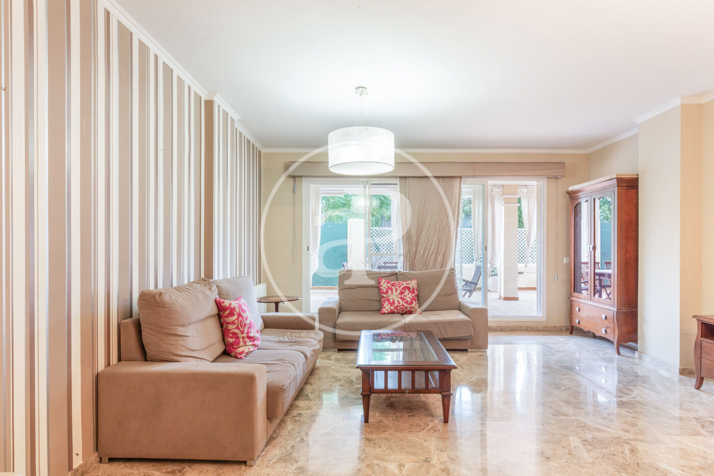 Un estupendo piso en planta baja con una terraza de 230 m con una pérgola blanca que hace una estancia muy agradable.