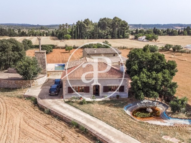 En medio de un entorno rural sereno y con espectaculares vistas a la sierra de Tramuntana, se encuentra esta encantadora casa de campo, justo fuera del pintoresco pueblo de Sencelles. Piedra local, madera antigua y terracota son los materiales predominantes de la casa, utilizados con maestría para estructurar la casa que se distribuyen en 2 plantas.  La planta inferior se compone de un salón con 2 chimeneas rodeado de grandes ventanales panorámicos que comunican directamente con el patio exterior.La sala conduce al comedor con vista a la cocina,lavandería y despensa. También en la planta baja encontramos 3 habitaciones dobles y 2 baños completos. Subiendo una escalera llegamos a la planta superior  donde encontramos 2 dormitorios dobles con baño en suite, uno de ellos con vestidor, una tercera habitación con baño privado y una terraza con con una sugerente vista a la montaña. Para realzar aún más la pintoresca vegetación de la propiedad, el jardín está lleno de palmeras, rosas, buganvillas y olivos. Un elemento imprescindible del oasis al aire libre es la piscina de agua salada  inmersa en un espectacular solárium con vistas  Los espacios exteriores invitan al relax con sus numerosas terrazas abiertas y porches en distintos niveles para el disfrute social, con sol todo el día y un ambiente de absoluta paz. La propiedad cuenta tambien de una ca casa de invitados independiente que ofrece un acogedor salón, 2 habitaciones, un baño completo y un porche trasero. Además, la finca cuenta con construcciones adicionales como un taller, establo para caballos, pista ecuestre, campo de fútbol y una zona con árboles frutales. La propiedad dispone de aire acondicionado, calefacción central de gasoil, pozo con vena de agua propria, vigas de madera, suelos de gres, ventanas con doble acristalamiento y puertas y ventanas de madera noble.  Esta propiedad ofrece un ambiente seguro y exclusivo para su tranquilidad y comodidad. Si aprecia la vida al aire libre, esta propiedad es perfecta para usted. ¿Te imaginas vivir aquí? ¡Esperamos su llamada!