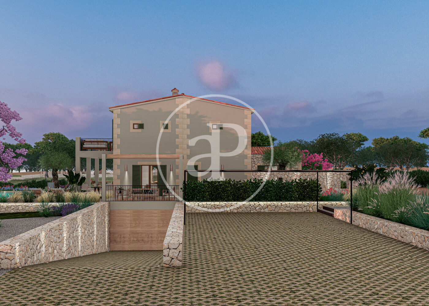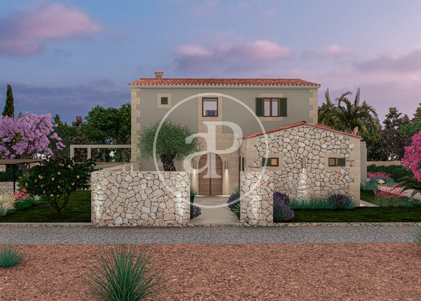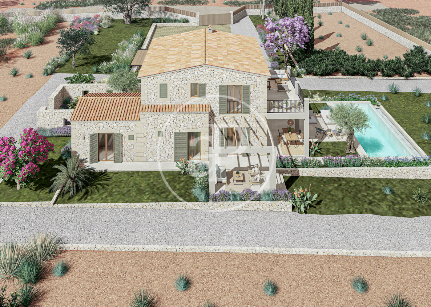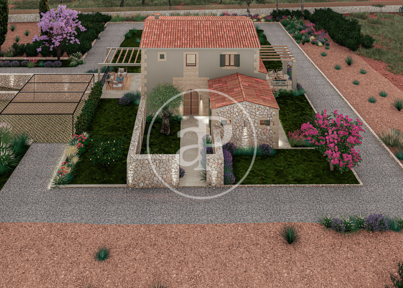 El proyecto de la finca de nueva construcción en Ruberts ,con su ubicación privilegiada en el centro de Mallorca, ofrece privacidad y una vista panorámica del hermoso paisaje circundante y las montañas. El solar de 14.622 m² con proyecto para construir una casa de 370m² divididos en tres plantas, piscina y varias terrazas proporciona mucho espacio habitable y áreas para relajarse al aire libre.