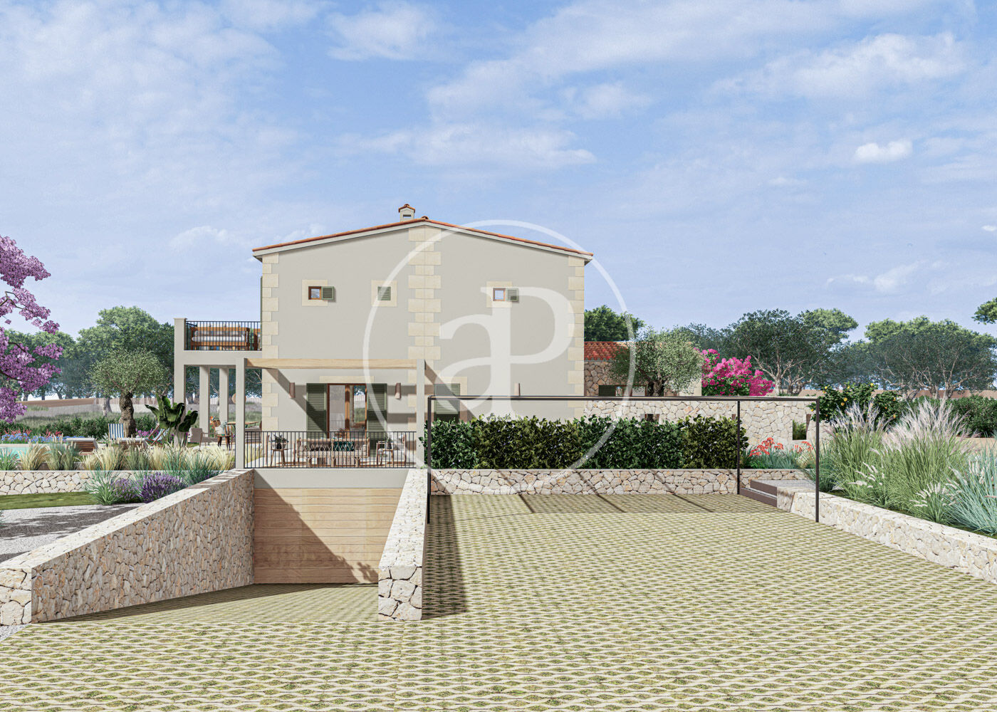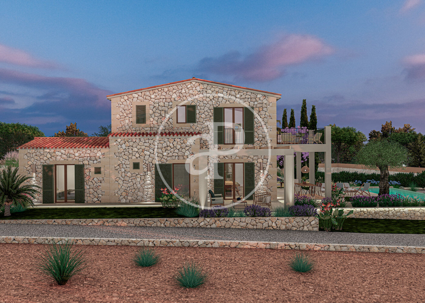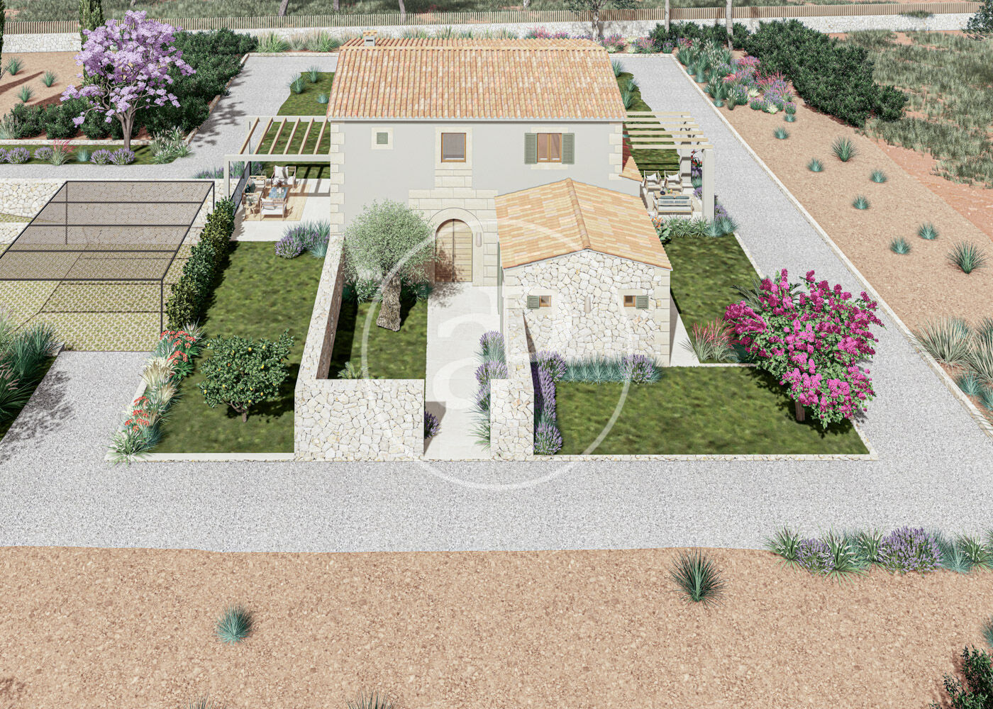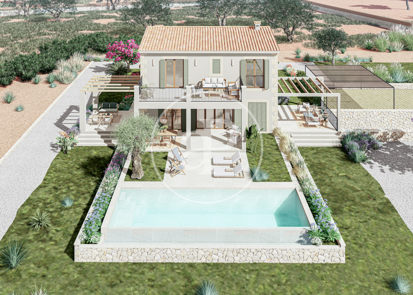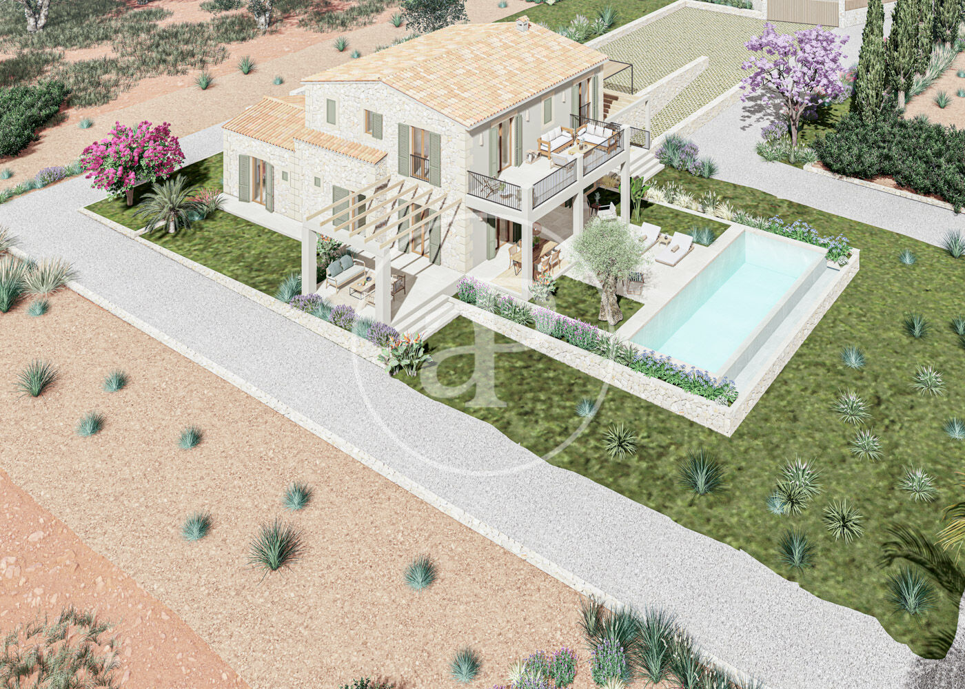 El proyecto de la finca de nueva construcción en Ruberts ,con su ubicación privilegiada en el centro de Mallorca, ofrece privacidad y una vista panorámica del hermoso paisaje circundante y las montañas. El solar de 14.622 m² con proyecto para construir una casa de 370m² divididos en tres plantas, piscina y varias terrazas proporciona mucho espacio habitable y áreas para relajarse al aire libre.