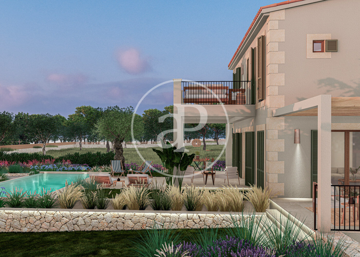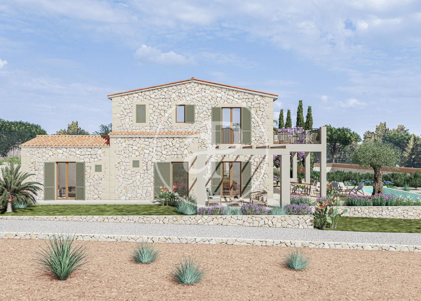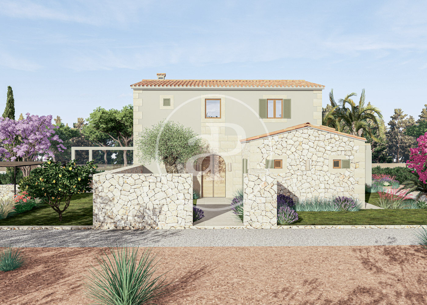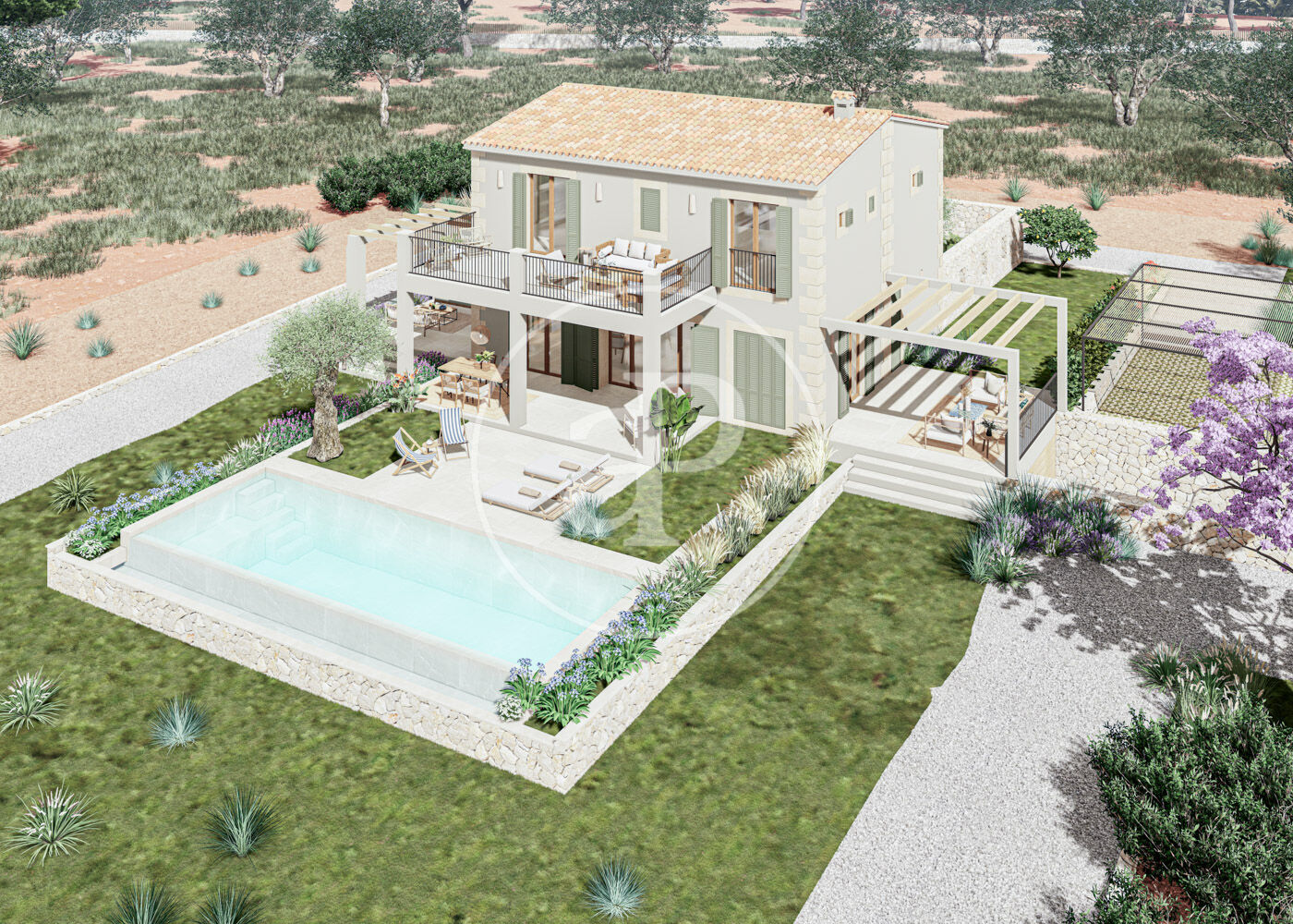 El proyecto de la finca de nueva construcción en Ruberts ,con su ubicación privilegiada en el centro de Mallorca, ofrece privacidad y una vista panorámica del hermoso paisaje circundante y las montañas. El solar de 14.622 m² con proyecto para construir una casa de 370m² divididos en tres plantas, piscina y varias terrazas proporciona mucho espacio habitable y áreas para relajarse al aire libre.