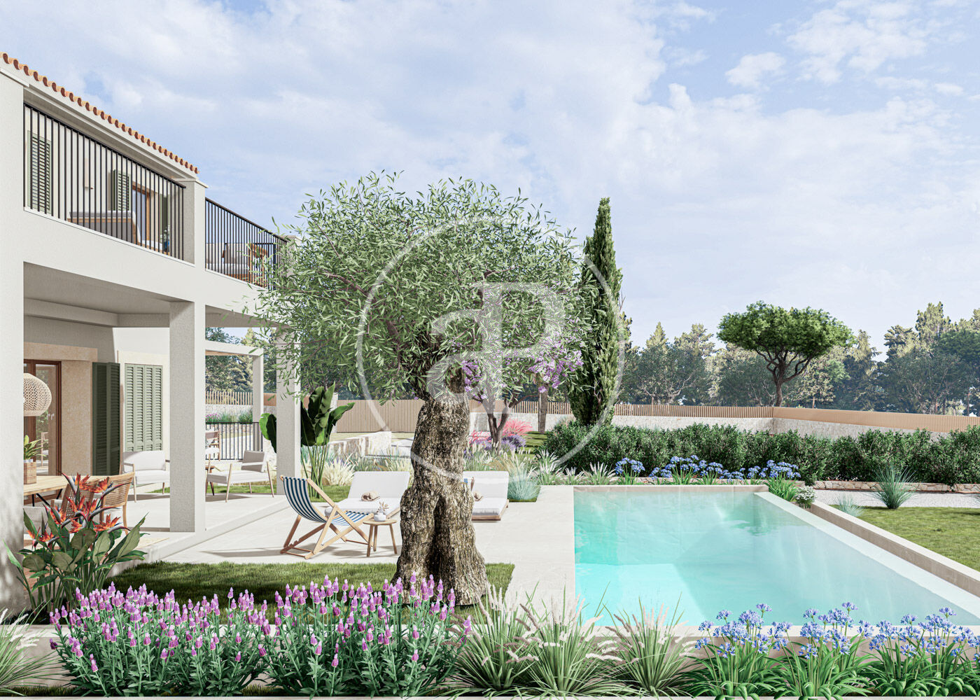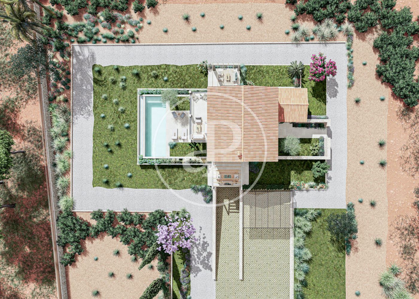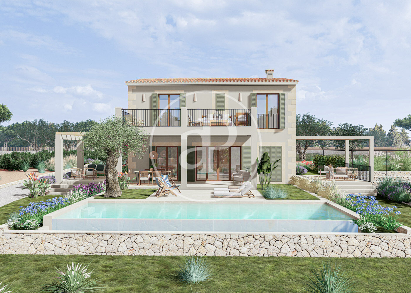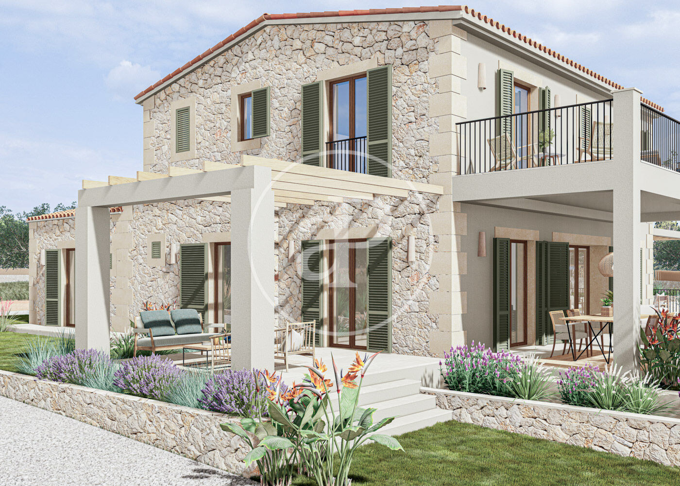 El proyecto de la finca de nueva construcción en Ruberts ,con su ubicación privilegiada en el centro de Mallorca, ofrece privacidad y una vista panorámica del hermoso paisaje circundante y las montañas. El solar de 14.622 m² con proyecto para construir una casa de 370m² divididos en tres plantas, piscina y varias terrazas proporciona mucho espacio habitable y áreas para relajarse al aire libre.