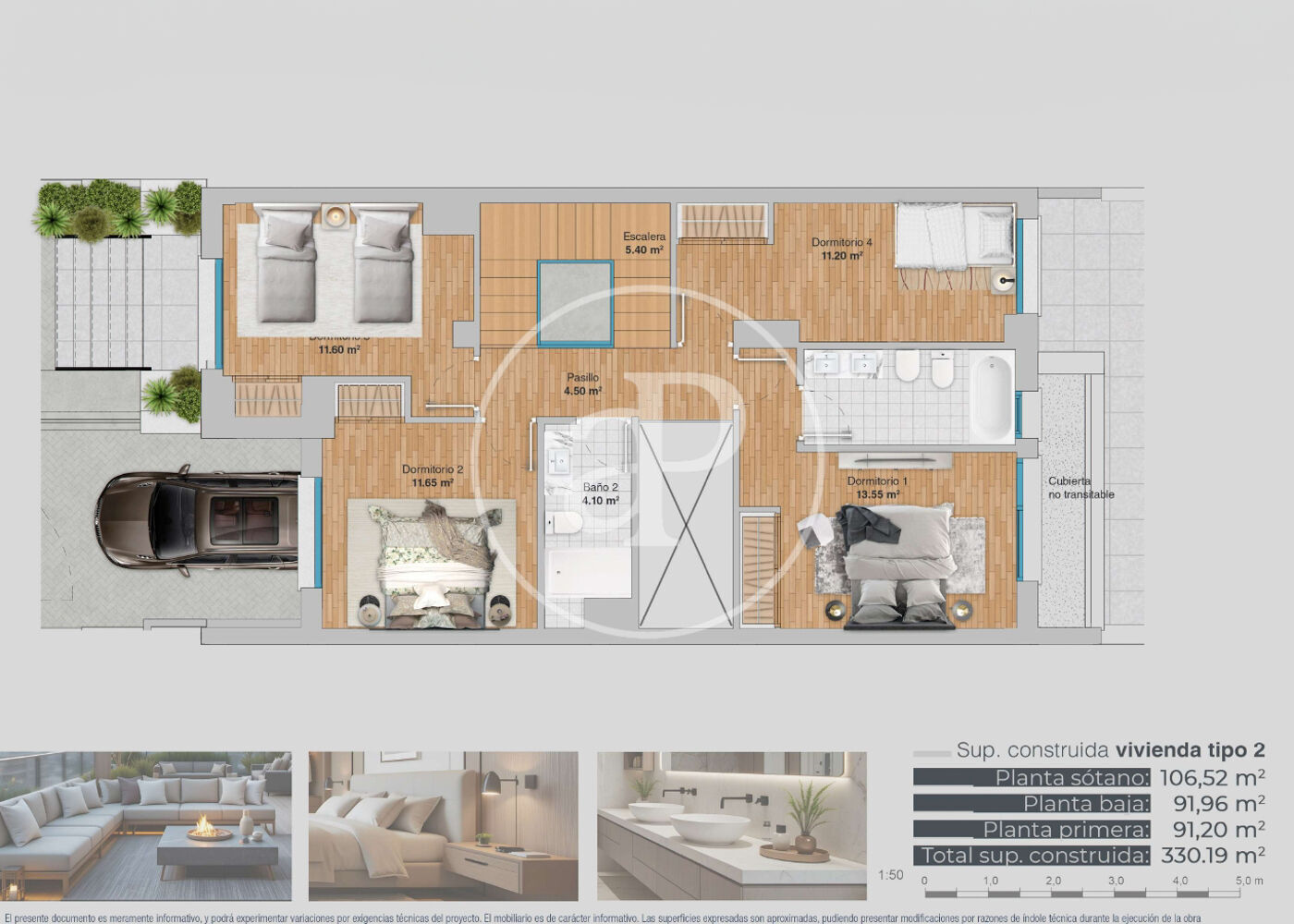 Amplia zona de aparcamiento cubierto independiente para cada vivienda