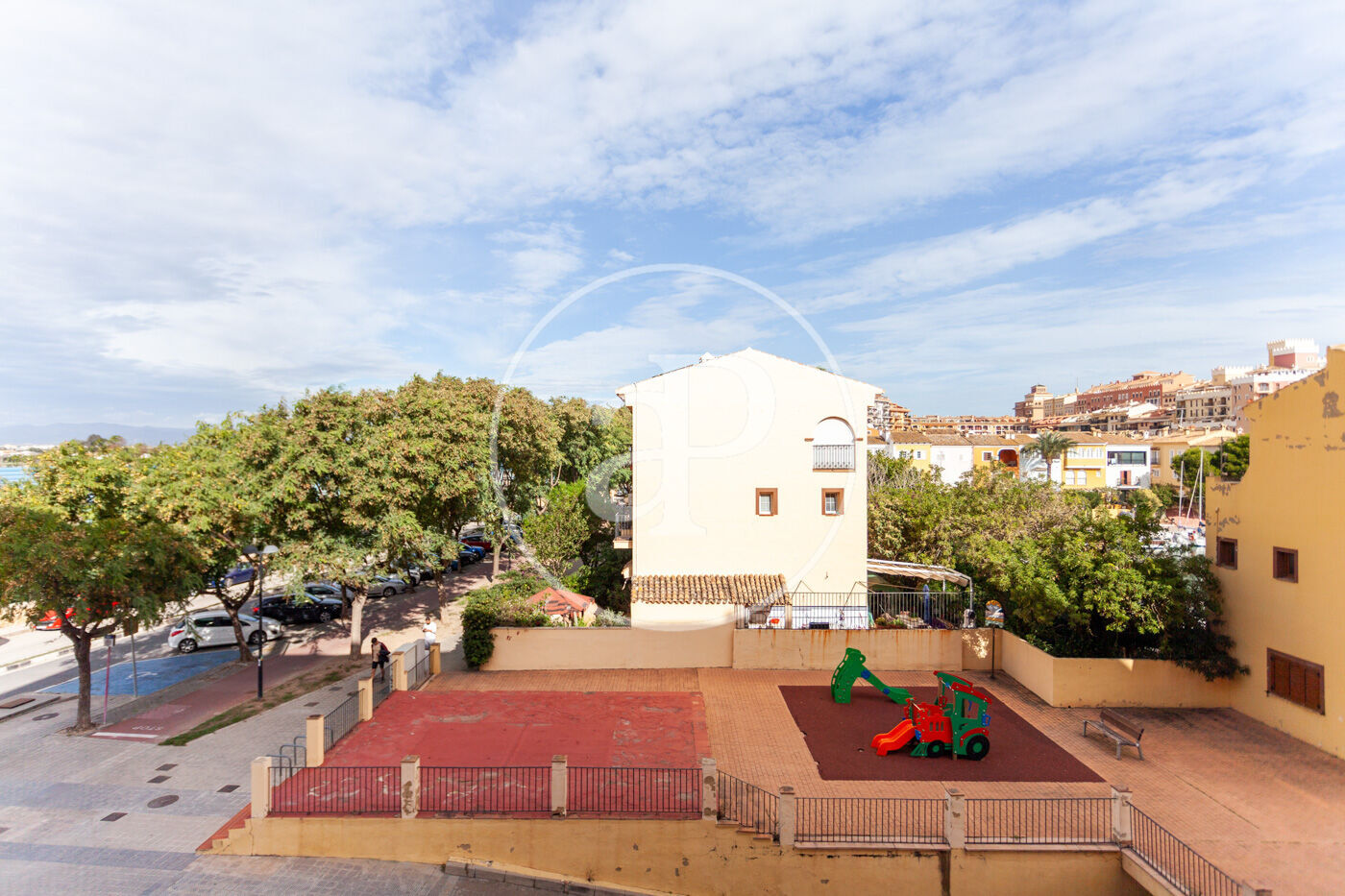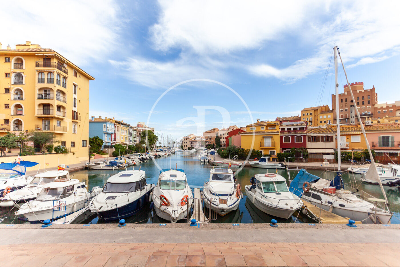 El saló s’obri a un balcó que regala captivadores vistes al moll i al canal, un escenari idíl·lic que convida al sotsobra i al gaudi quotidià. Gràcies a la seua orientació i amplitud, l’habitatge desplega una lluminositat excepcional que realça cada racó. El sòl de parquet acabat d’instal·lar aporta calidesa i distinció, mentre que el split d’aire condicionat assegura el màxim confort durant tot l’any.