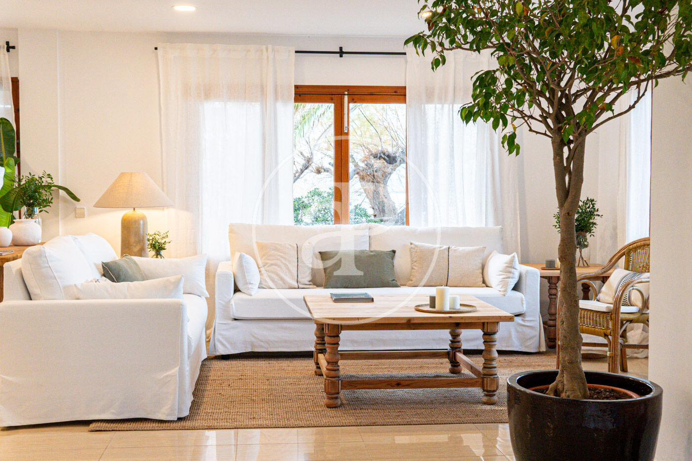 Vila Talaia és un projecte d'arquitectura moderna que es distingeix pel seu volum rectangular, així com el seu disseny modern i càlid, amb línies senzilles que prioritzen la llum natural i la connexió amb l'entorn exterior, creant un ambient elegant i acollidor. Aquesta casa de tres plantes combina funcionalitat i estètica, oferint un refugi sofisticat i còmode. En el soterrani es troba el pàrquing amb capacitat per a tres vehicles, accessible a través d'una rampa. En aquesta planta també hi ha una sala de bugaderia, una sala tècnica, un lavabo, una habitació amb bany, un espai perfecte per a un traster i un espai polivalent, ideal per a un gimnàs amb sauna. La planta baixa destaca per un ampli espai obert que permet una connexió visual fluida entre l'interior i el jardí amb la piscina. En aquesta àrea es troben el saló, el menjador i la cuina de concepte obert, oferint un entorn ideal tant per a la vida quotidiana com per a l'entreteniment. A més, compta amb un bany complet i una habitació multifuncional que pot adaptar-se com a dormitori, oficina o altres usos segons es requereixi. En la primera planta, se situen quatre habitacions dobles, cadascuna equipada amb el seu propi bany complet. En tres de les habitacions també hi ha espai d'estudi, mentre que a l'habitació principal inclou també un espaiós vestidor, proporcionant un ambient privat i luxós.
