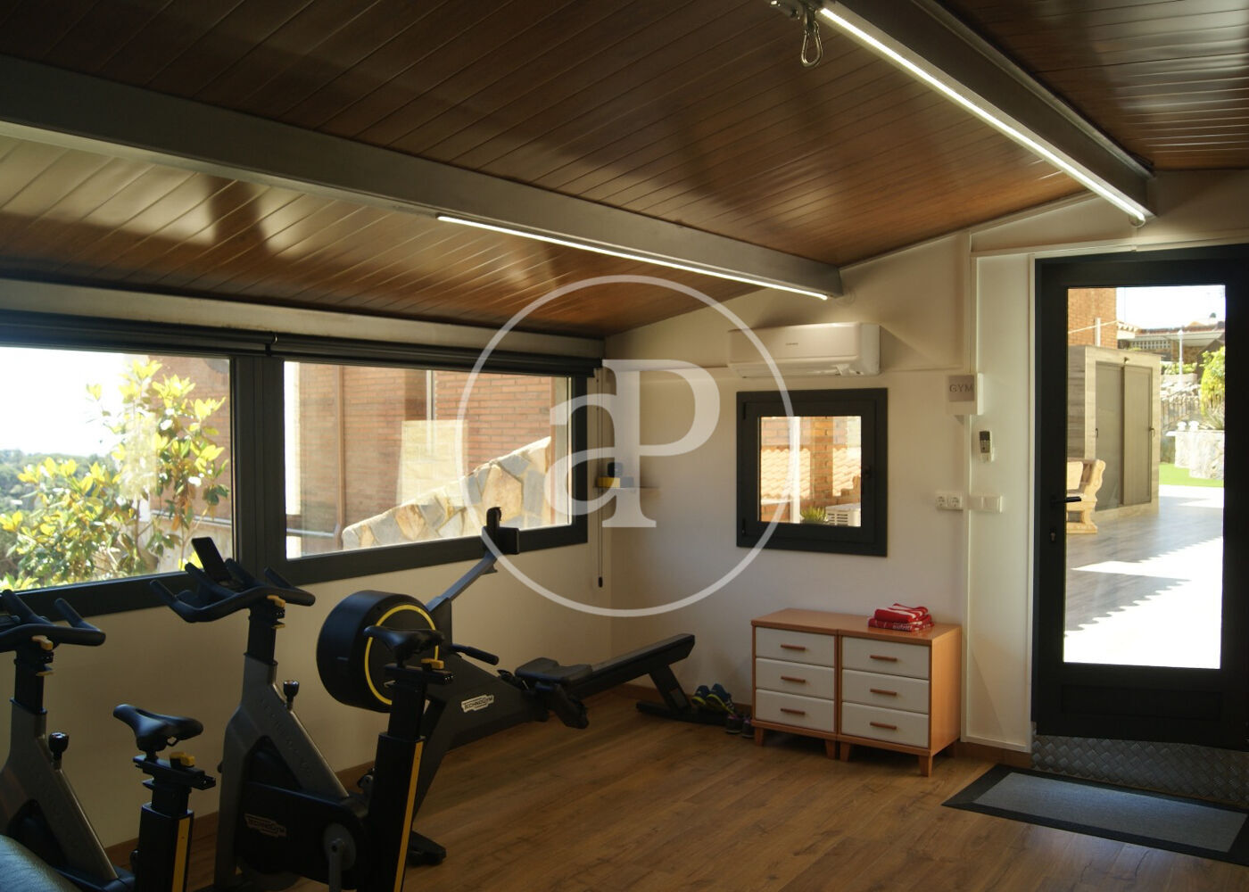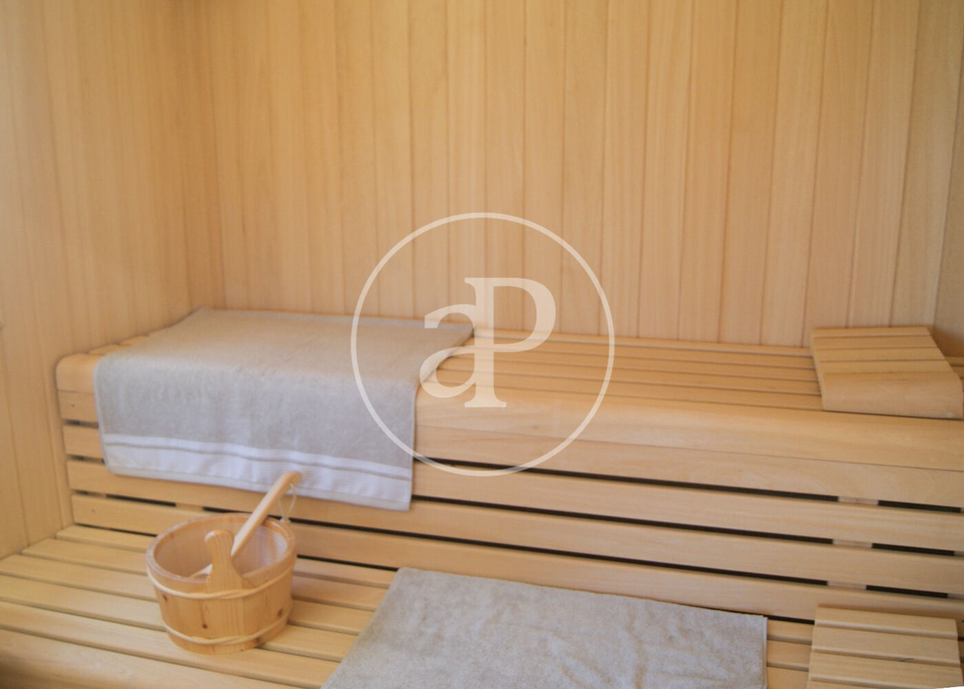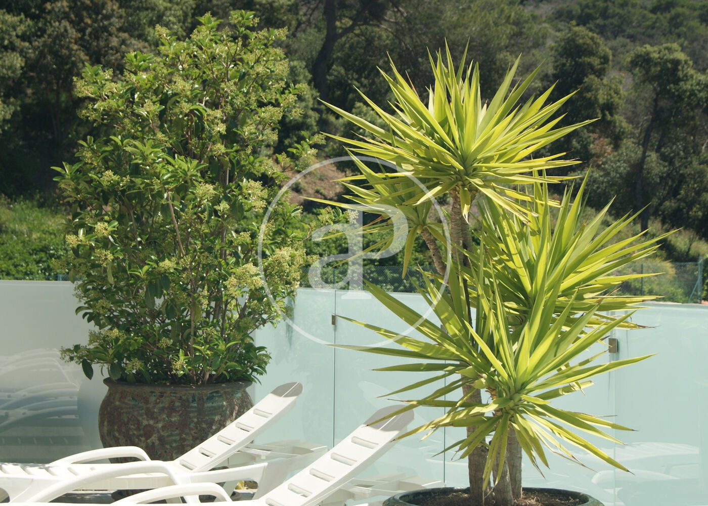 La zona exterior és un autèntic oasi de benestar: piscina salina privada amb vestidors, zona de gimnàs, sauna i àmplies terrasses per gaudir de les vistes al Mediterrani i al paisatge del Maresme.