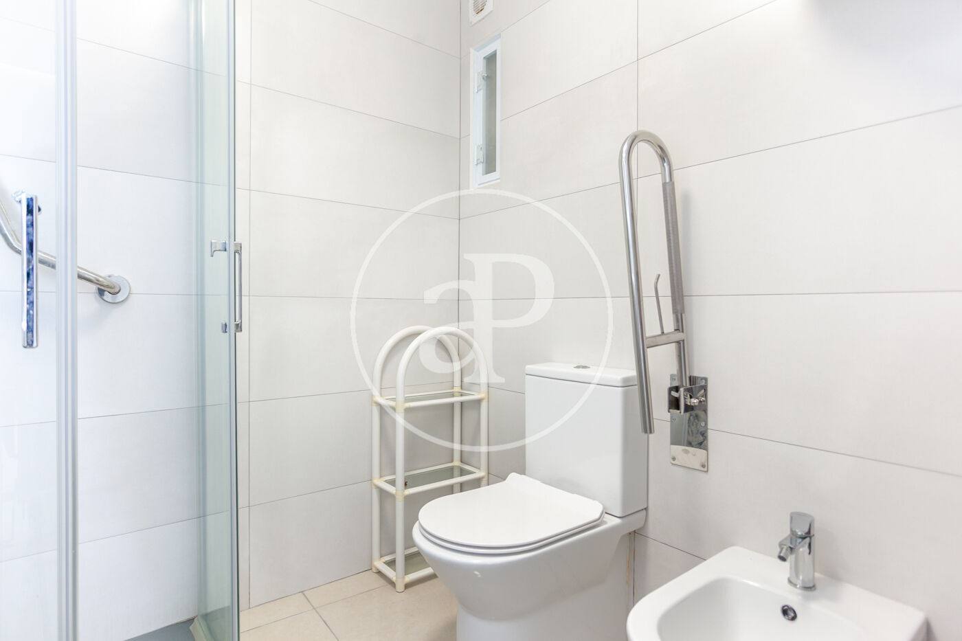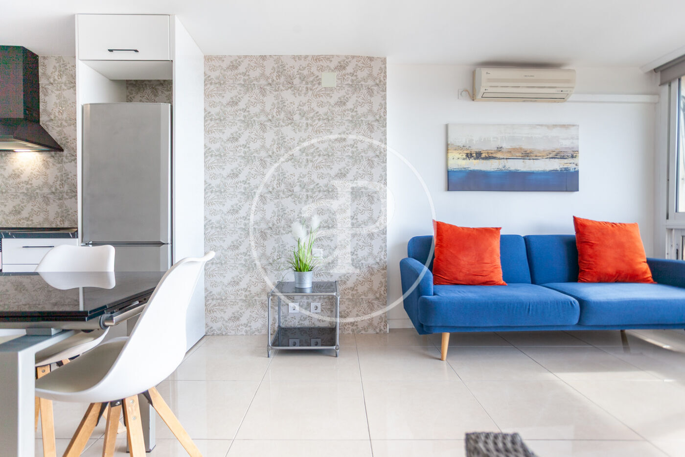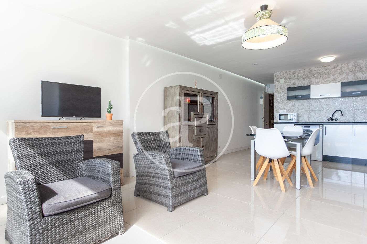 El pis té 55 m² construïts (52 m² útils), distribuïts en un saló-menjador molt lluminós, una habitació doble, un bany complet i una cuina independent. L’orientació sud garanteix llum natural tot el dia, mentre que l’aire condicionat i la calefacció elèctrica ofereixen el màxim confort en qualsevol època de l’any.