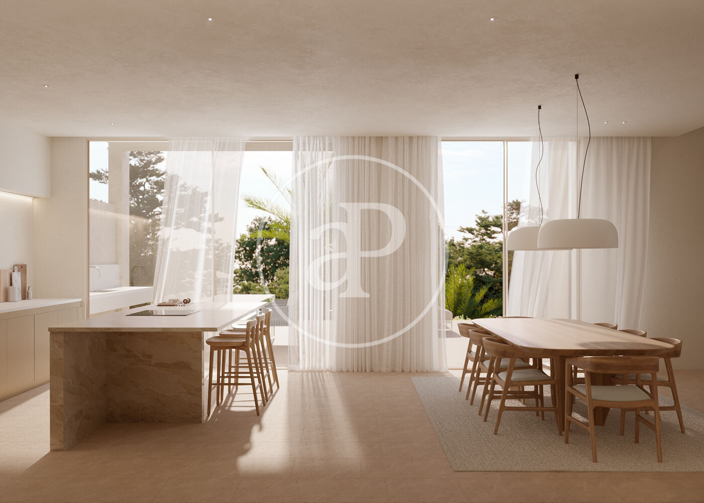 En entrar, un ampli saló amb imponents finestrals s’obre davant teu, banyant l’estança de llum natural i oferint accés directe a un encantador espai chill-out, ideal per desconnectar. La cuina-menjador, de disseny avantguardista, compta amb electrodomèstics d’última generació i amplis espais, perfectes per gaudir de trobades familiars o amb amics. En aquesta mateixa planta, un gran espai multifuncional et permet crear la teva pròpia biblioteca, despatx o sala d’entreteniment.