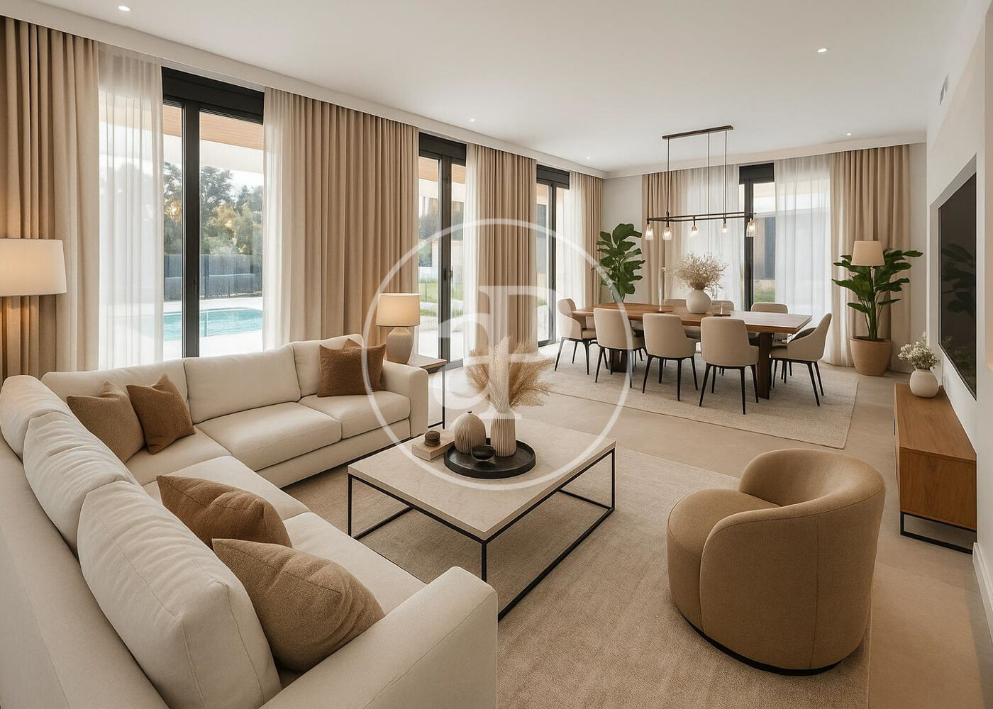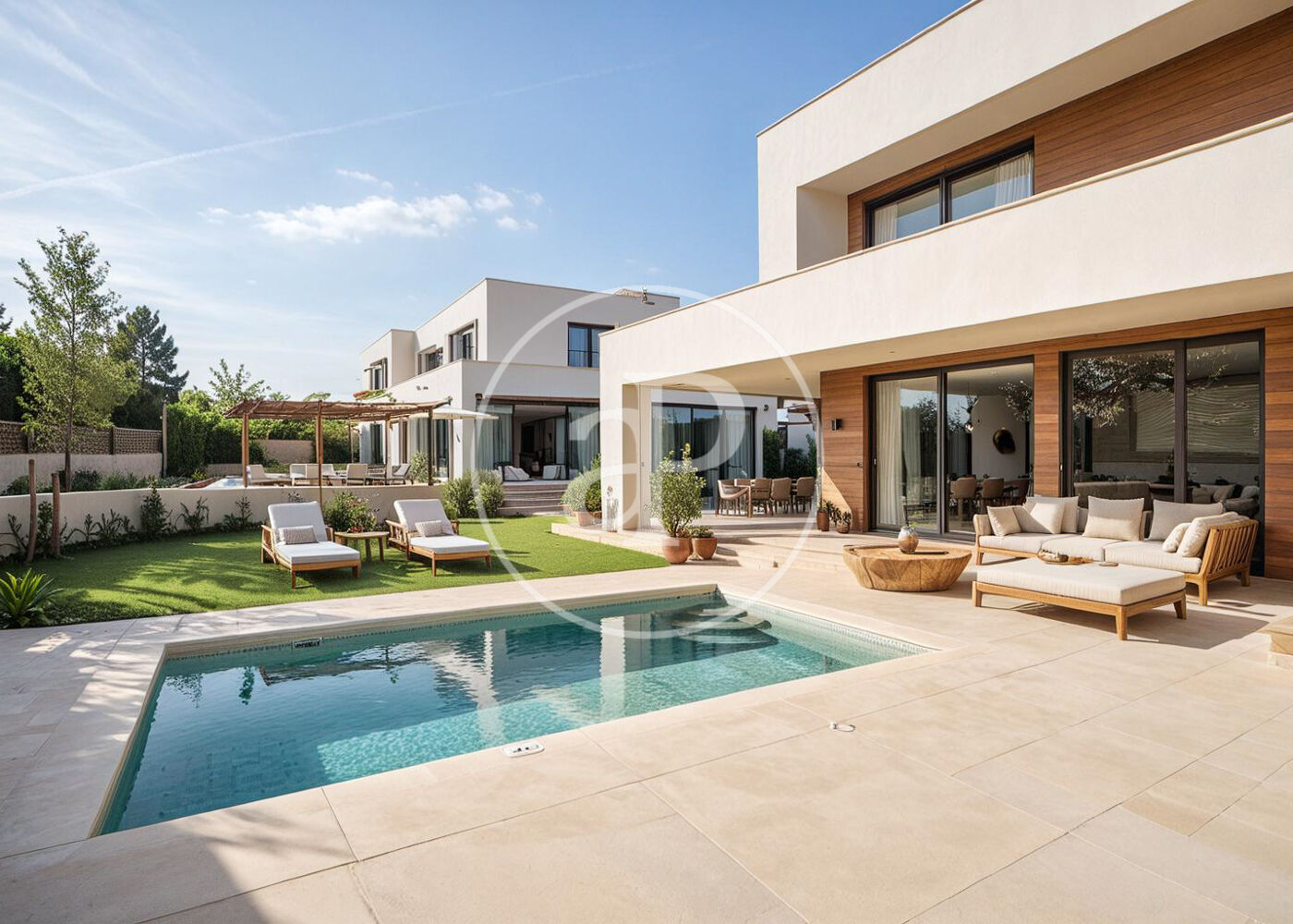 La propietat disposa de 4 dormitoris, 5 banys, piscina, 2 places d'aparcament, aire condicionat, armaris encastats, balcó, pati posterior, calefacció i traster.