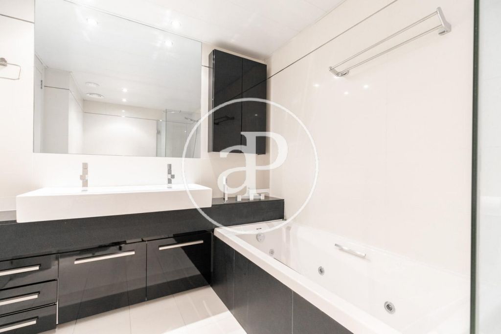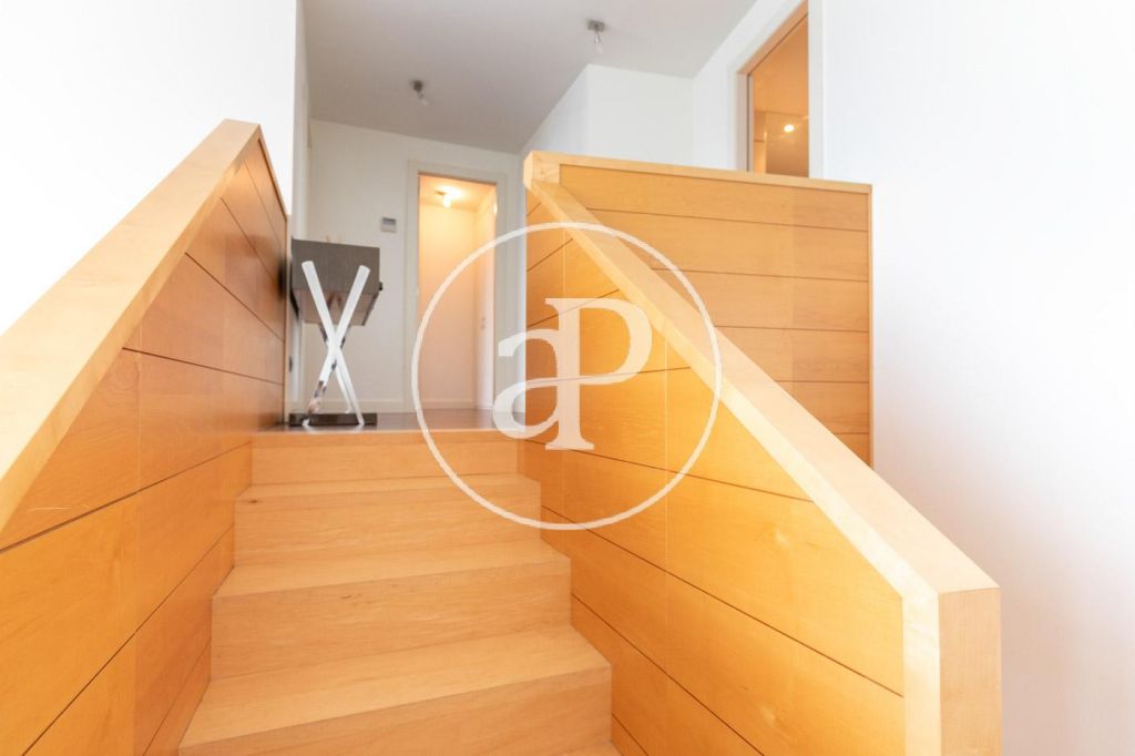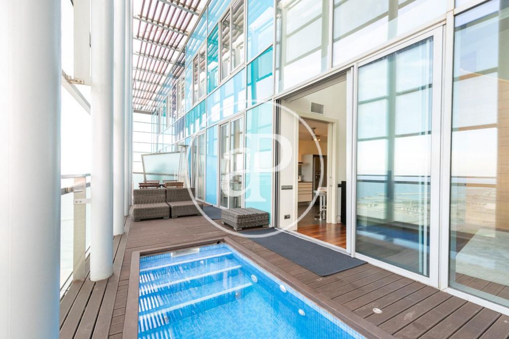 Espectacular àtic dúplex de luxe a Diagonal Mar. L’habitatge disposa d’una superfície de 160 m² distribuïts en tres habitacions, totes amb armaris encastats, una d’elles en suite. També compta amb una zona d’estudi des d’on es poden gaudir unes vistes impressionants de tota la ciutat de Barcelona. Aquest àtic és un dels més espectaculars que es poden trobar a Diagonal Mar.
