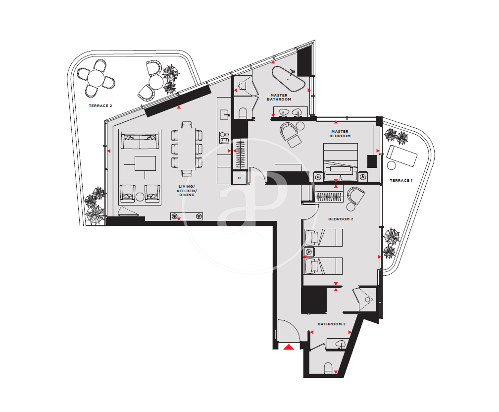 El pis disposa de 2 habitacions i 2 banys. Els banys compten amb acabats de luxe, incloent-hi una banyera d'hidromassatge i una àmplia dutxa.