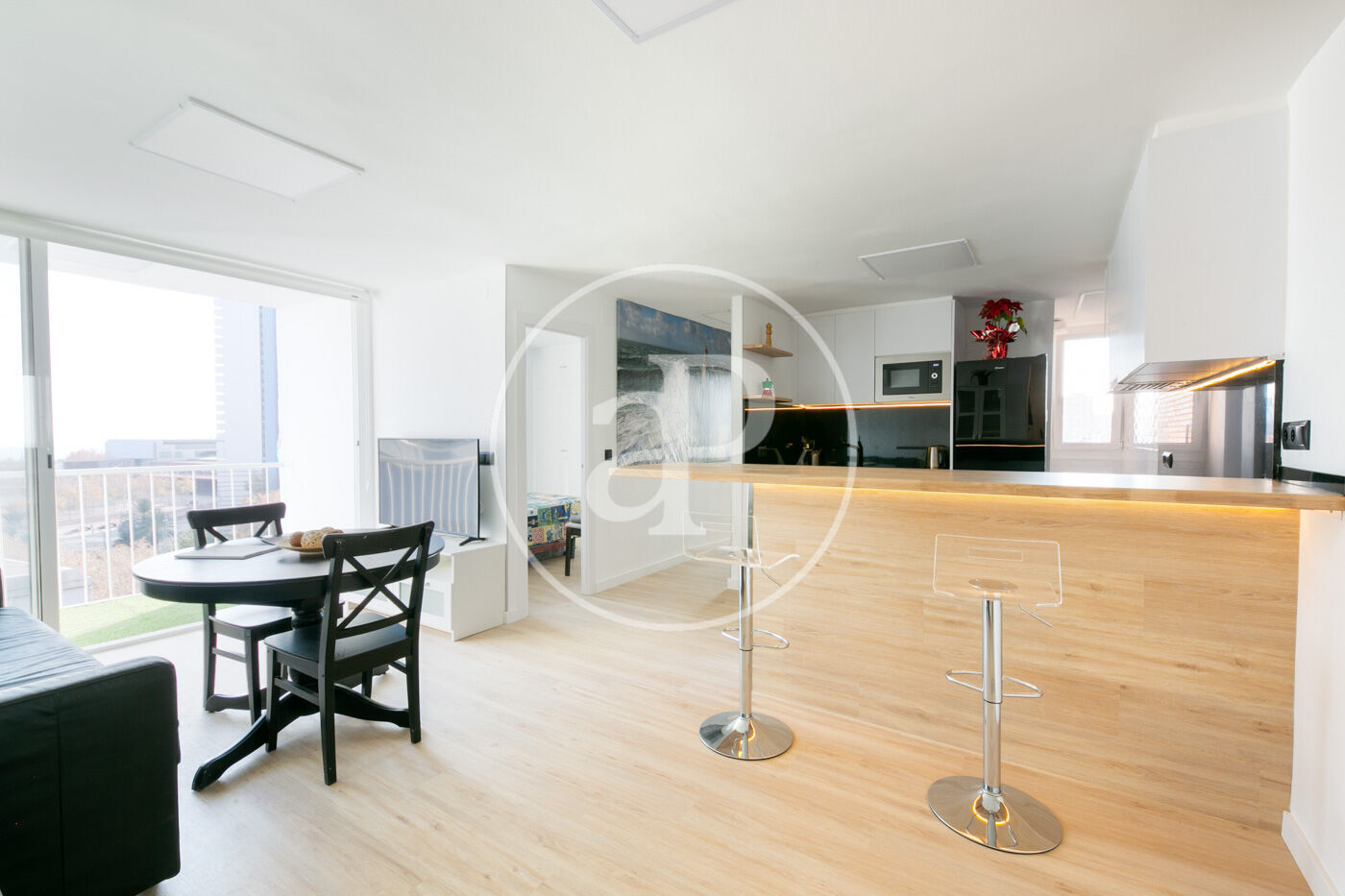 Davant del Centre Comercial Diagonal Mar i molt ben comunicat amb tot tipus de transport, trobem aquest àtic acabat de reformar amb vistes al mar.