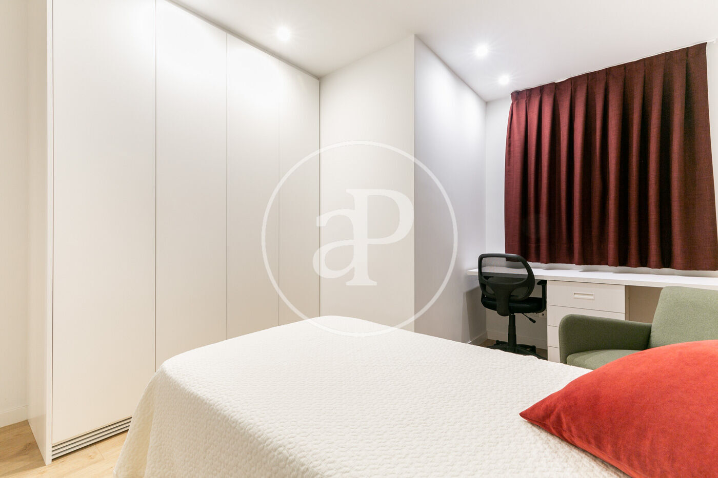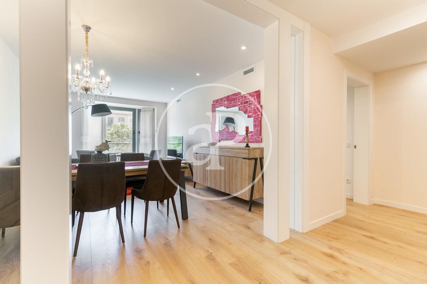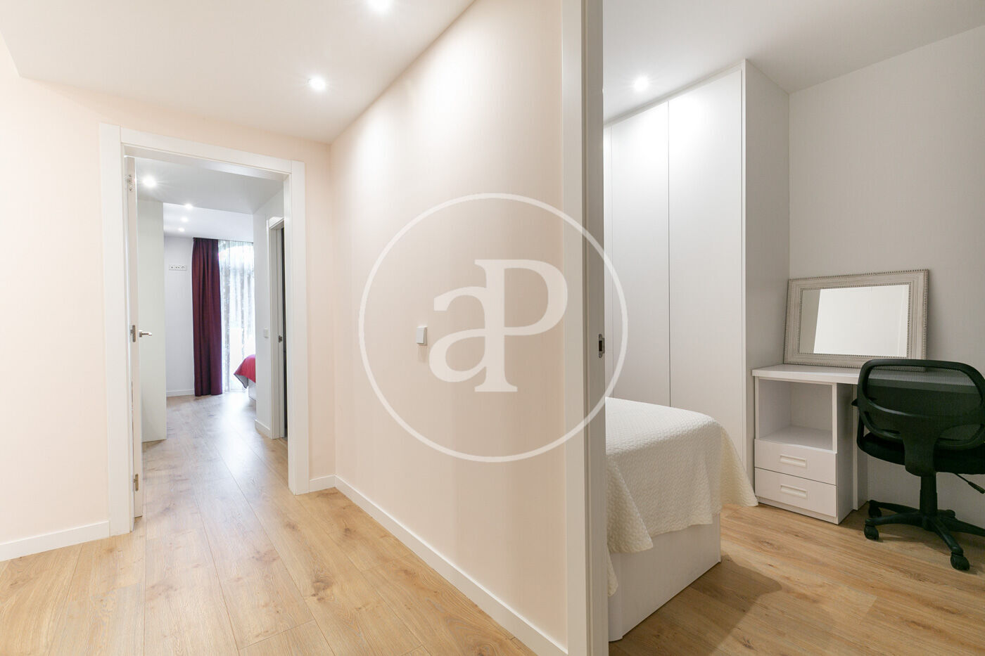 Situat al carrer Rosselló de l’Eixample, a només un carrer de l’Avinguda Diagonal i molt a prop de tot tipus de comerços i transport públic, a tocar de la Sagrada Família i la Casa de les Punxes, trobem aquest pis de 125 m², recentment reformat i totalment amoblat amb molt bon gust. La zona de dia compta amb una cuina oberta totalment equipada, un saló menjador molt lluminós amb sortida a dos balcons que donen al carrer i un lavabo amb detalls modernistes al terra. La zona de nit consta de tres dormitoris: un doble en suite amb llit de matrimoni i armaris encastats revestits i il·luminats; un altre doble amb dos llits individuals, armaris encastats també revestits i il·luminats, amb sortida a un pràctic despatx o estudi situat a la galeria que dóna a un pati d’illa obert, ampli i molt lluminós. A més, disposa d’un petit traster lateral. El dormitori individual també disposa d’un armari encastat ampli i revestit. L’habitatge compta, a més, amb un bany complet amb plat de dutxa, un espai de lectura i una zona d’aigües. La finca disposa d’ascensor. El mobiliari real pot no correspondre exactament amb el que es mostra a les fotografies d’aquest anunci.* En compliment de la Llei 12/2023 i la Llei 18/2007 informem que:Índex de R.P.LL: 12,69 € / m2 Preu de referència estatal 1.889,00 €Lloguer de l'últim contracte d'arrendament: 2.100,00 €