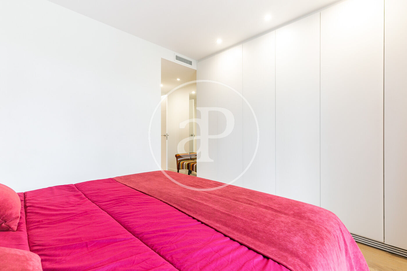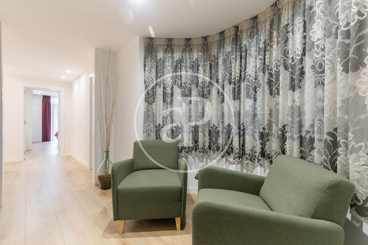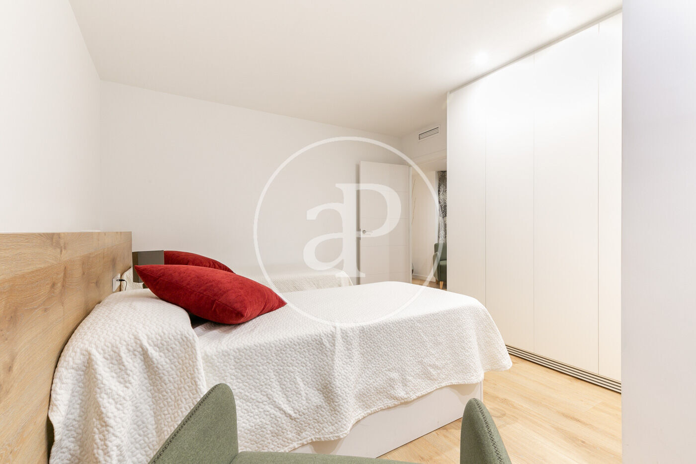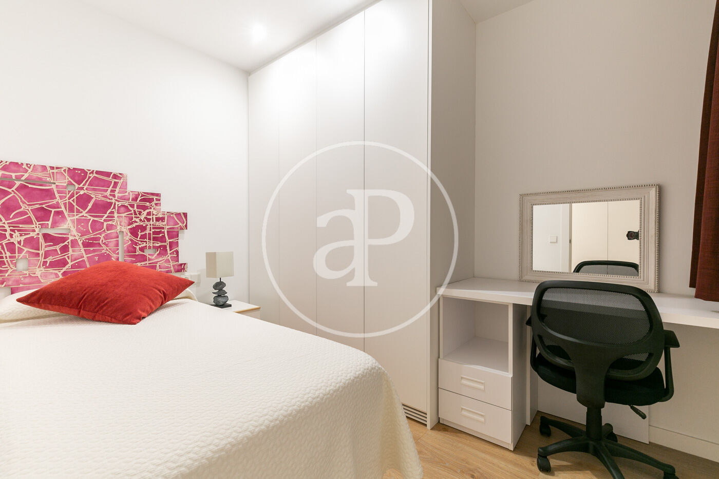 Situat al carrer Rosselló de l’Eixample, a només un carrer de l’Avinguda Diagonal i molt a prop de tot tipus de comerços i transport públic, a tocar de la Sagrada Família i la Casa de les Punxes, trobem aquest pis de 125 m², recentment reformat i totalment amoblat amb molt bon gust. La zona de dia compta amb una cuina oberta totalment equipada, un saló menjador molt lluminós amb sortida a dos balcons que donen al carrer i un lavabo amb detalls modernistes al terra. La zona de nit consta de tres dormitoris: un doble en suite amb llit de matrimoni i armaris encastats revestits i il·luminats; un altre doble amb dos llits individuals, armaris encastats també revestits i il·luminats, amb sortida a un pràctic despatx o estudi situat a la galeria que dóna a un pati d’illa obert, ampli i molt lluminós. A més, disposa d’un petit traster lateral. El dormitori individual també disposa d’un armari encastat ampli i revestit. L’habitatge compta, a més, amb un bany complet amb plat de dutxa, un espai de lectura i una zona d’aigües. La finca disposa d’ascensor. El mobiliari real pot no correspondre exactament amb el que es mostra a les fotografies d’aquest anunci.* En compliment de la Llei 12/2023 i la Llei 18/2007 informem que:Índex de R.P.LL: 12,69 € / m2 Preu de referència estatal 1.889,00 €Lloguer de l'últim contracte d'arrendament: 2.100,00 €