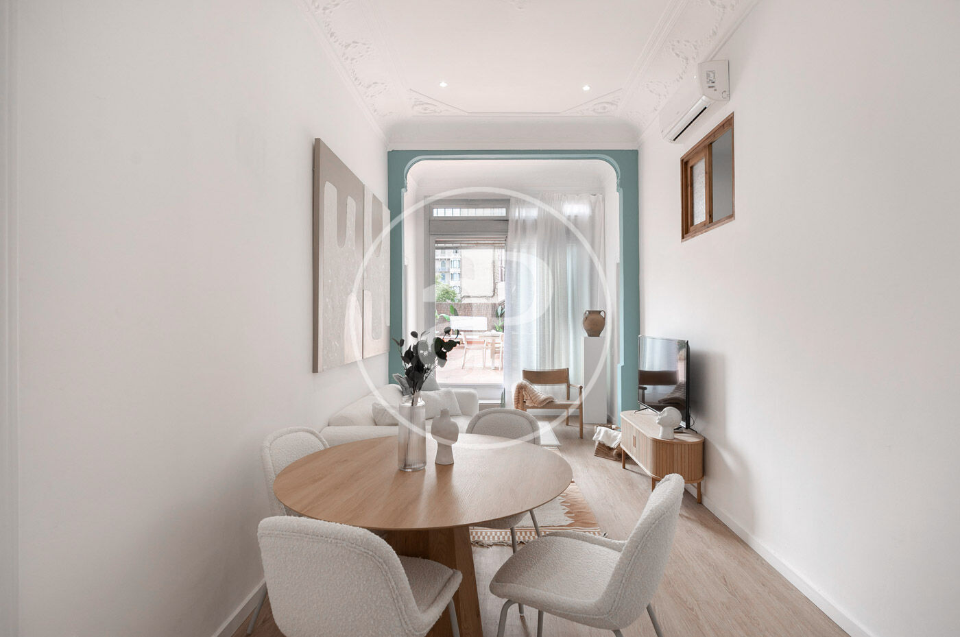 Al cor de la ciutat, situat a pocs passos de l’emblemàtic Passeig de Gràcia i al costat del Mercat de la Concepció, ens trobem amb un fabulós habitatge recentment reformat i moblat.