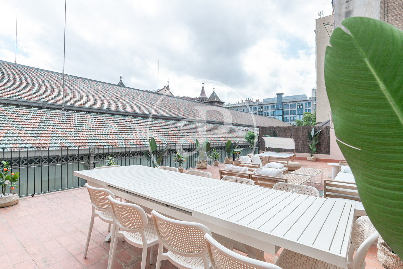 Exclusiu pis al cor de Barcelona, al costat de la Plaça Urquinaona, Plaça Catalunya i la Via Laietana, situat en un edifici històric anterior al segle XVIII, completament restaurat per oferir totes les comoditats modernes sense perdre el seu encant original. L'habitatge té una superfície de 116 m² i consta d’un lluminós saló menjador que s’obre a una agradable terrassa de 8 m² amb vistes a edificis històrics i jardins, una cuina moderna amb taulells de granit, electrodomèstics d’alta gamma i una elegant cava per a vins, a més de tres dormitoris espaiosos, dos dels quals són suite, i tres banys complets. Aquest pis ha estat renovat amb materials de primera qualitat, preservant el caràcter de l’època i adaptant-lo a les necessitats de la vida contemporània. Destaca el parquet de roure massís a tot l’apartament, els banys revestits amb marbre italià beix que reflecteix qualitat i sofisticació, amb elegants aixetes d’or raspallat, i una paleta de colors càlida i harmoniosa que crea un ambient relaxant i sofisticat. La seva ubicació privilegiada et situa al centre neuràlgic de Barcelona, envoltat de comerços, restaurants, transport i tot el que necessites per gaudir al màxim de la ciutat. Malgrat la proximitat a zones concorregudes, l’apartament gaudeix de total tranquil·litat, fins i tot amb les finestres obertes. L’edifici disposa d’ascensor i ha estat totalment rehabilitat. A més, l’habitatge inclou un funcional traster privat de 4 m² al costat de l’entrada de l’edifici, ideal també per a bicicletes o altres pertinences. Aquest pis és la combinació perfecta entre història, estil i funcionalitat. Truca’ns per visitar-lo i deixa’t sorprendre!