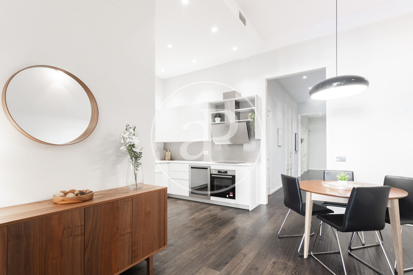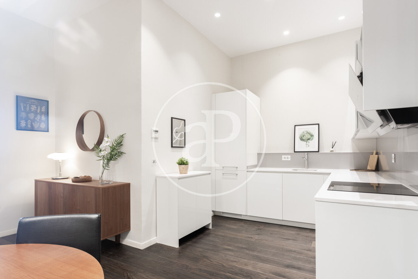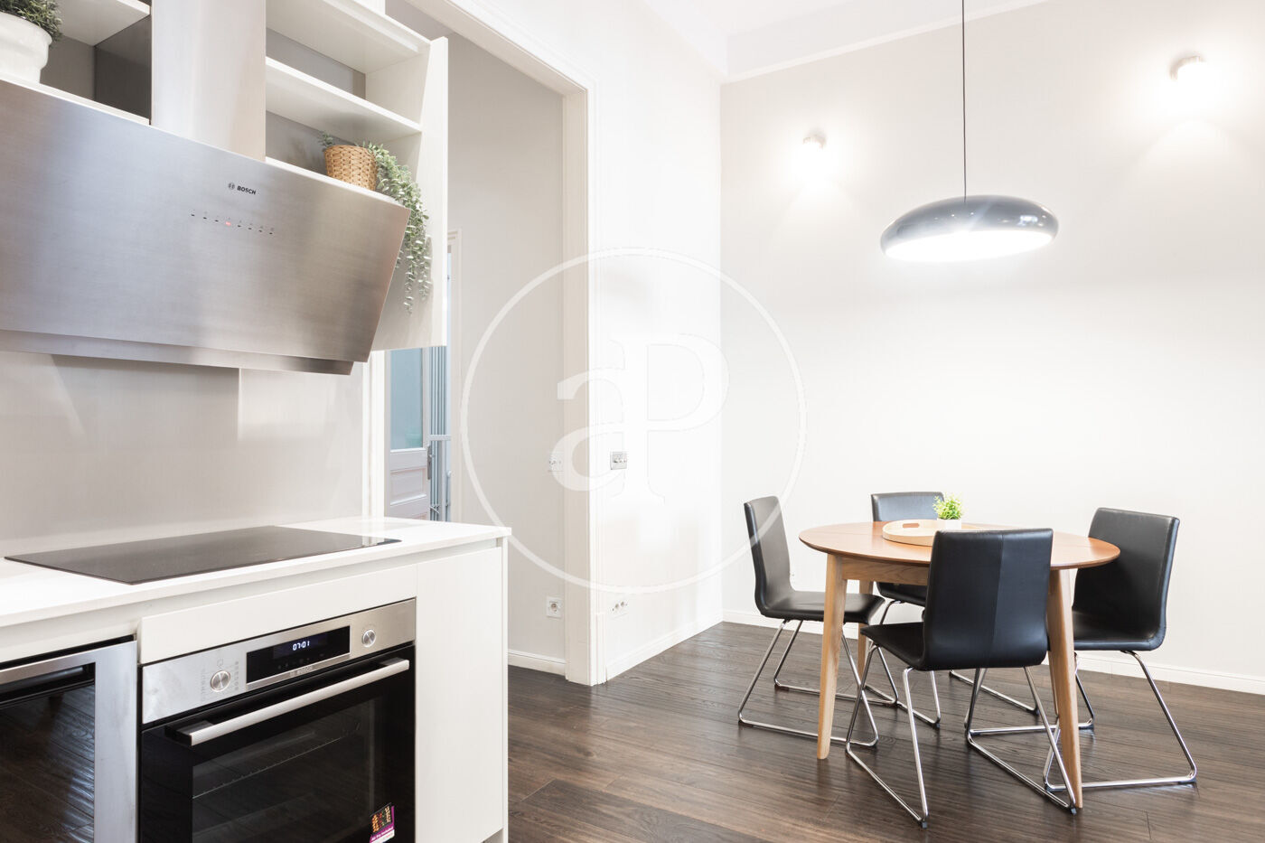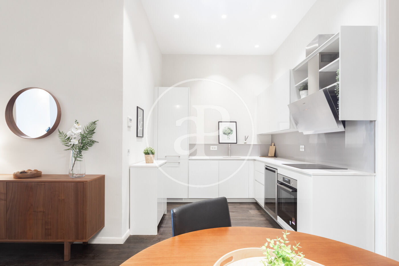 Ampli espai diürn amb cuina oberta de disseny, equipada amb electrodomèstics d’alta gamma, menjador i saló amb sortida directa a la terrassa.