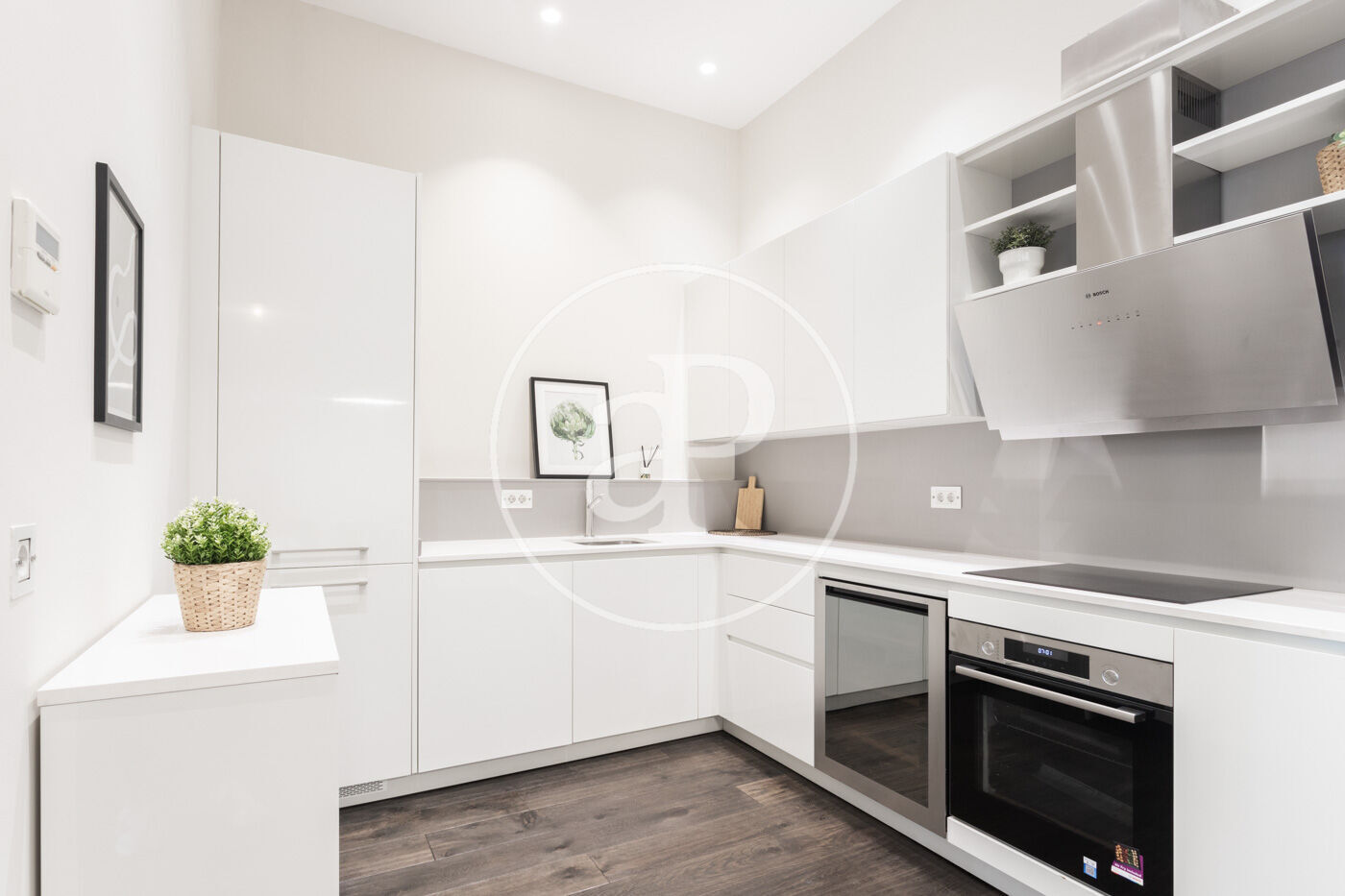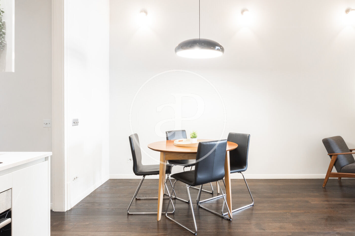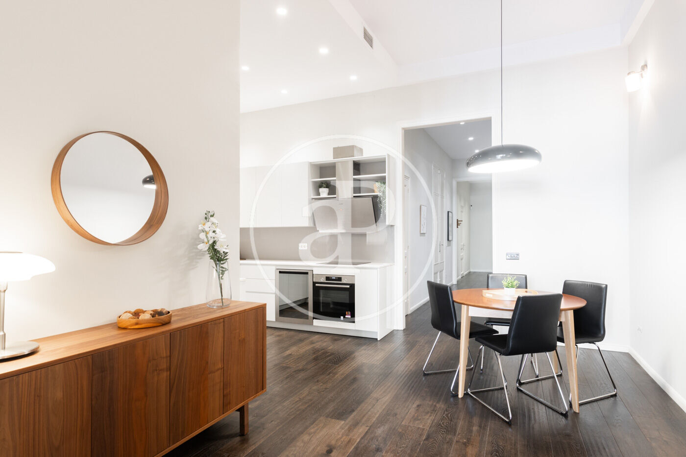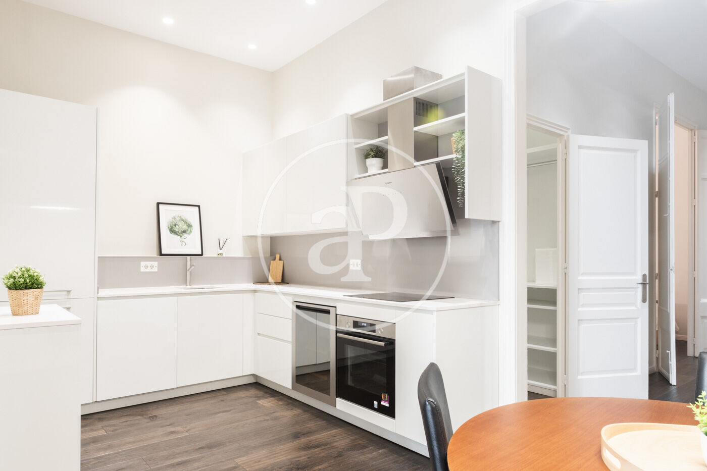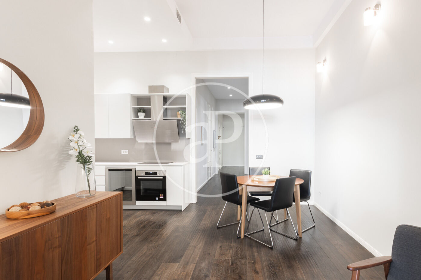 Ampli espai diürn amb cuina oberta de disseny, equipada amb electrodomèstics d’alta gamma, menjador i saló amb sortida directa a la terrassa.