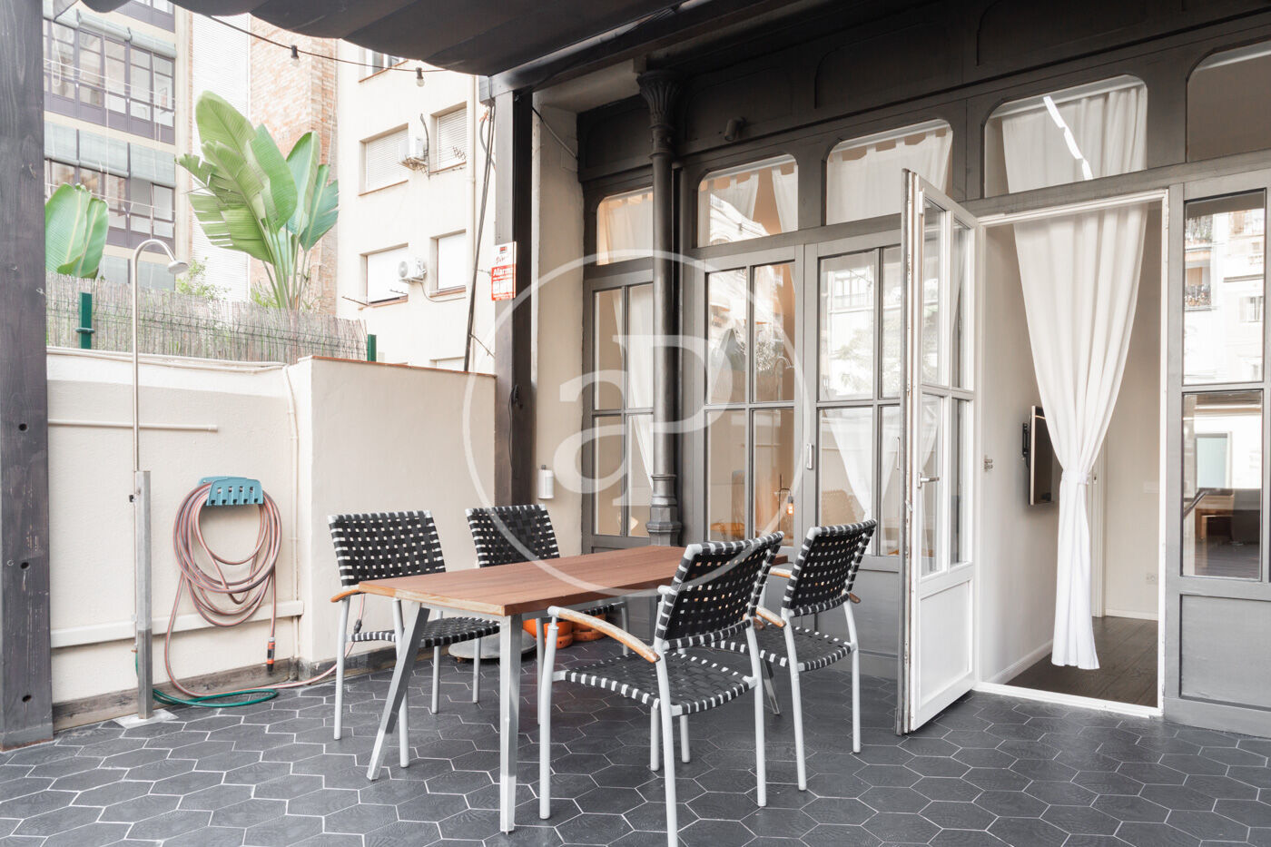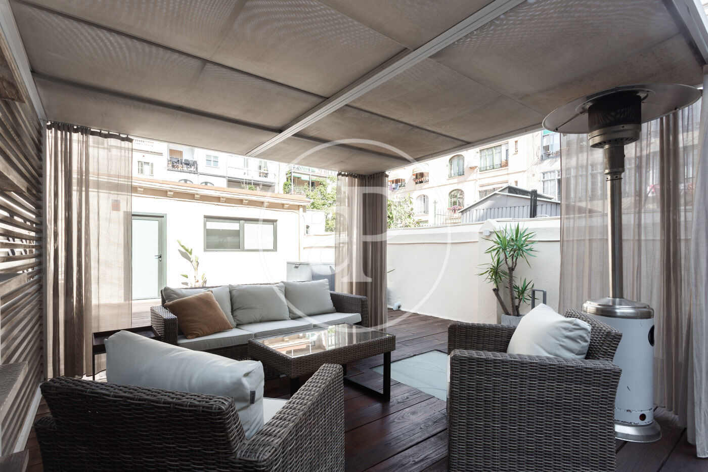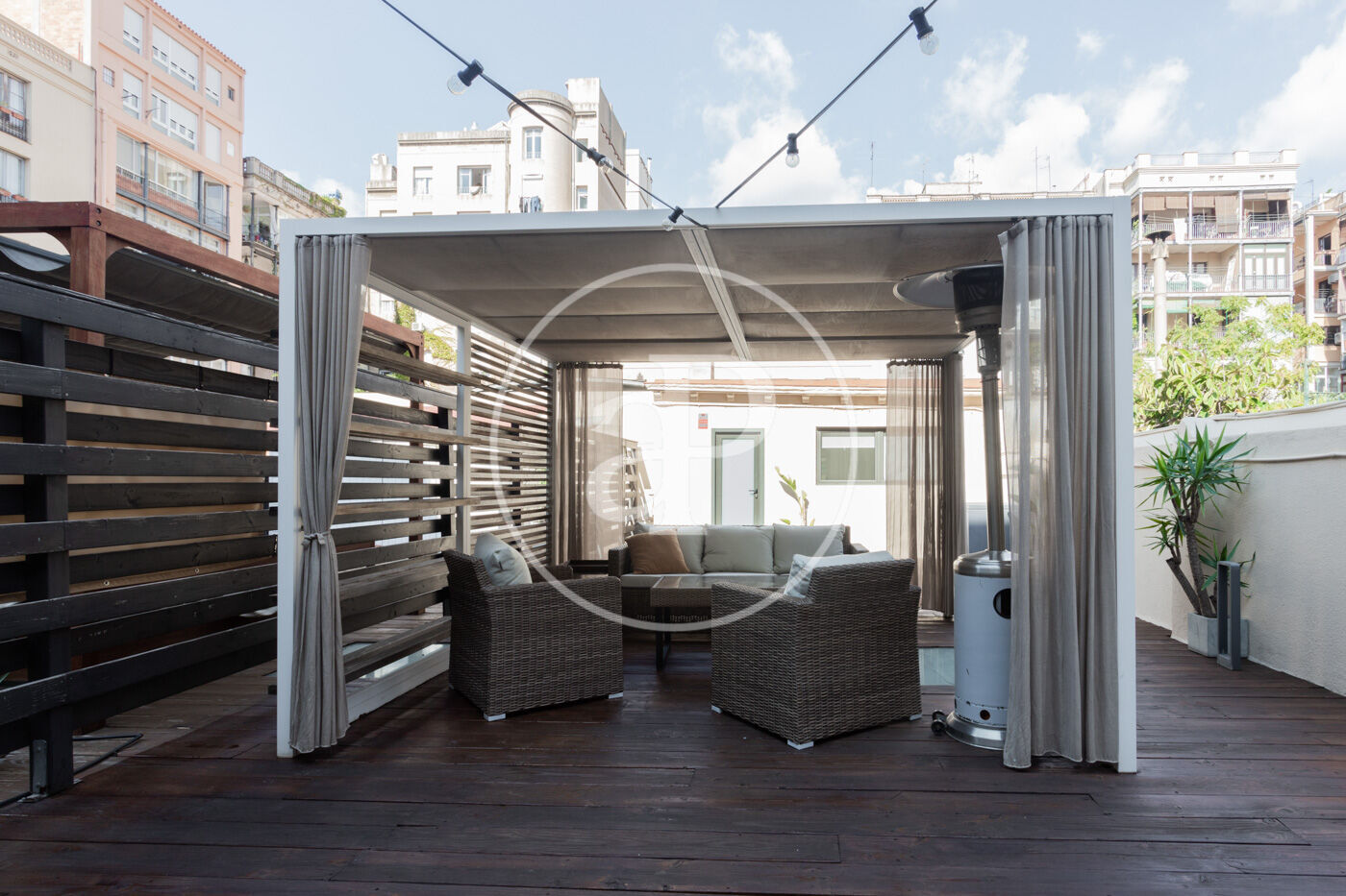 La terrassa de 112 m² és la gran protagonista: equipada amb barbacoa de gas, pèrgola i zona chill out, perfecta per gaudir de moments de relax i oci amb el privilegi d’estar al cor de la ciutat.