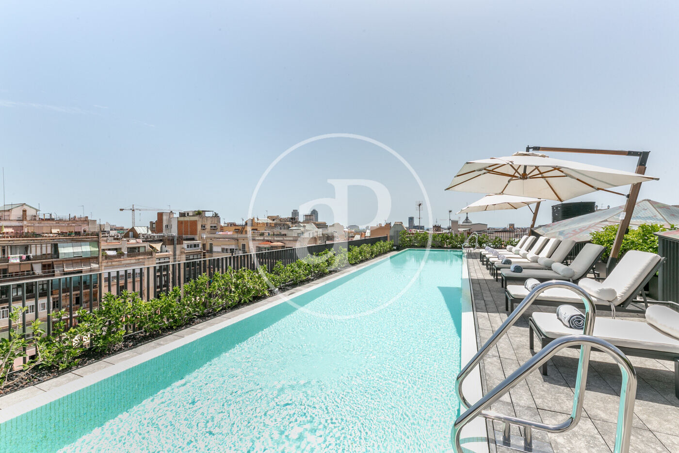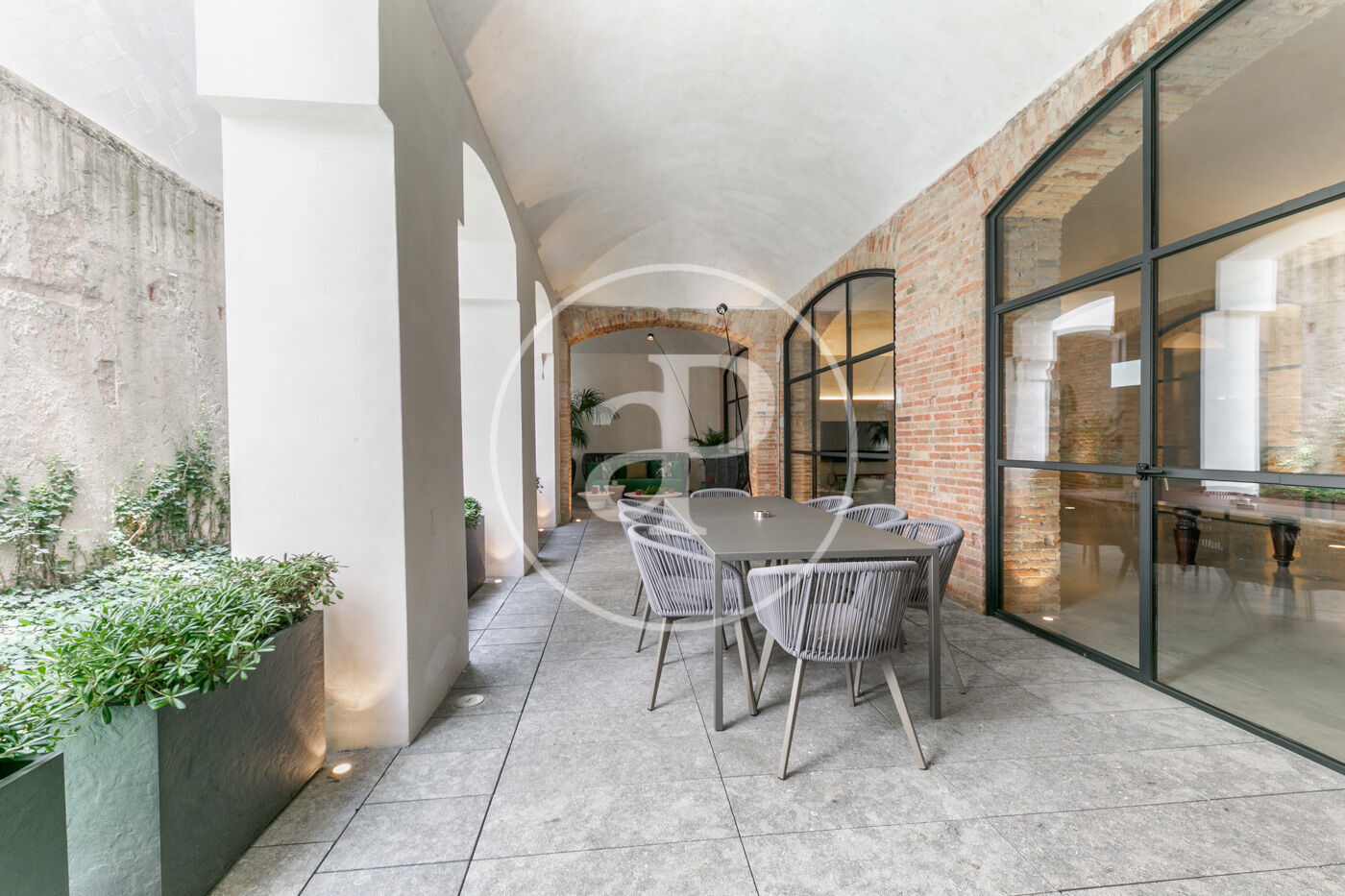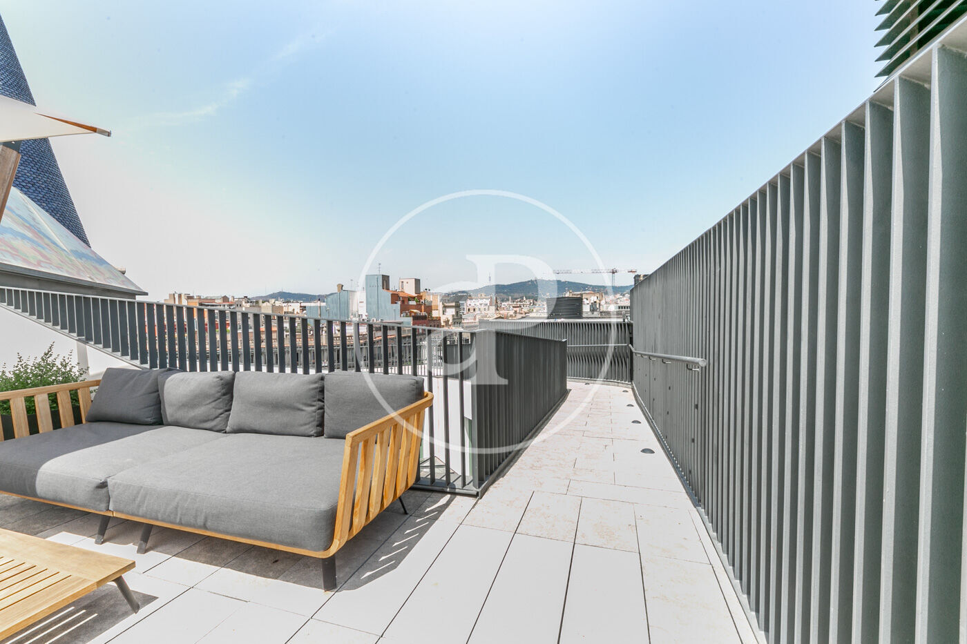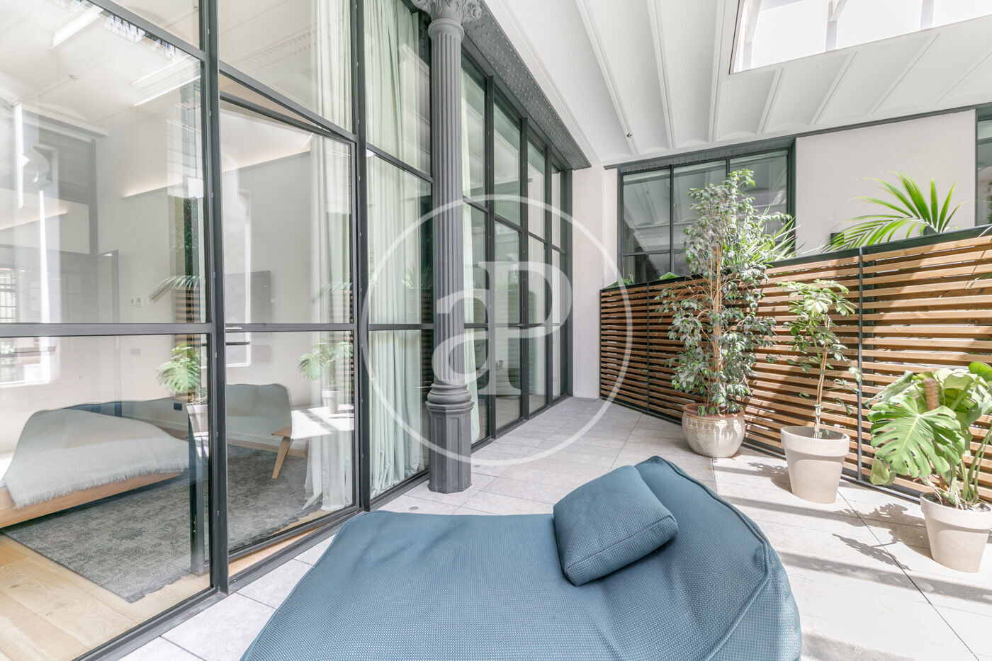 La zona de dia consta d'un lluminós i ampli saló-menjador, amb cuina oberta, completament equipada amb electrodomèstics d'alta gamma, a més d'un lavabo de cortesia. La zona de nit consta de dues habitacions dobles amb armaris encastats, ambdues en suite i amb dutxa. Des d'elles s'accedeix a una meravellosa terrassa de 30 m², amb sofàs, per gaudir d'una tranquil·litat absoluta, enmig del barri de l'Eixample.