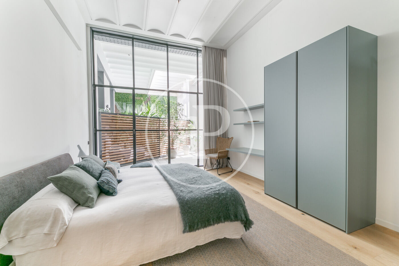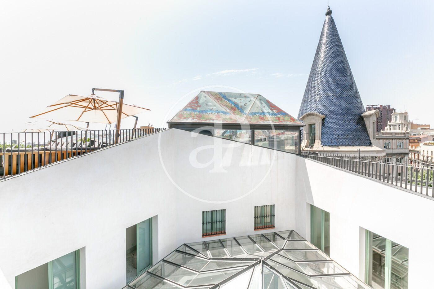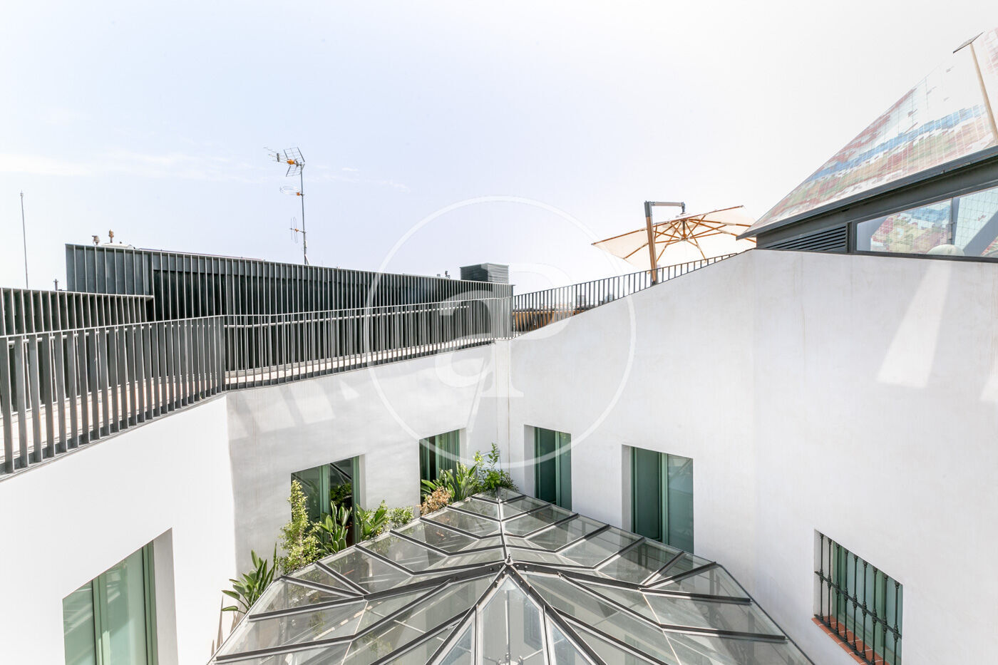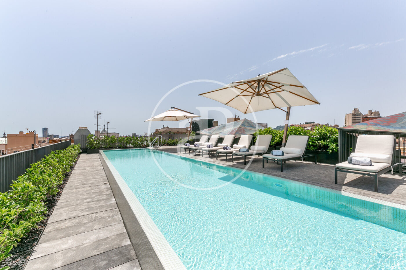 La zona de dia consta d'un lluminós i ampli saló-menjador, amb cuina oberta, completament equipada amb electrodomèstics d'alta gamma, a més d'un lavabo de cortesia. La zona de nit consta de dues habitacions dobles amb armaris encastats, ambdues en suite i amb dutxa. Des d'elles s'accedeix a una meravellosa terrassa de 30 m², amb sofàs, per gaudir d'una tranquil·litat absoluta, enmig del barri de l'Eixample.