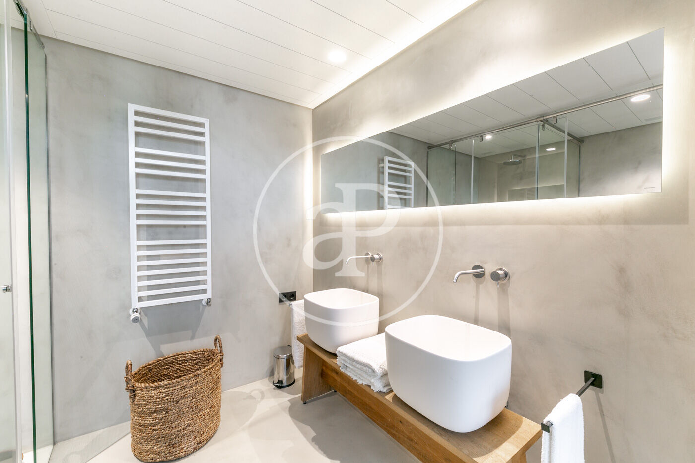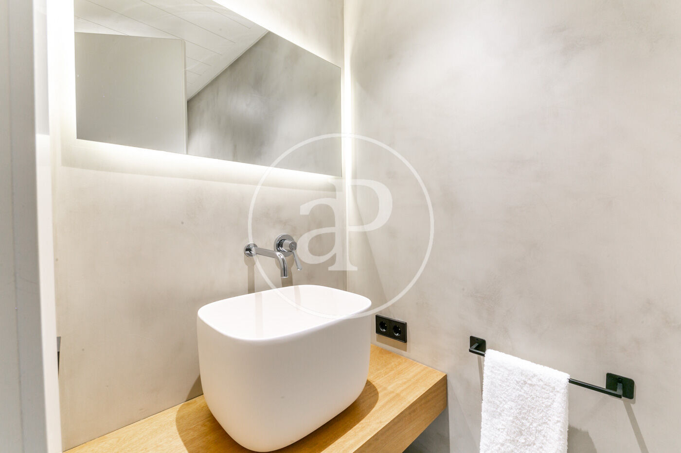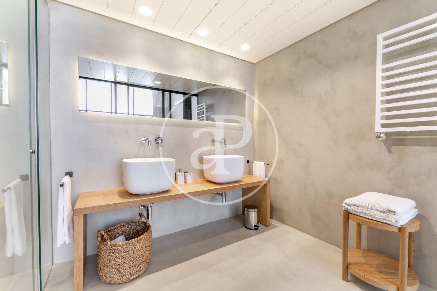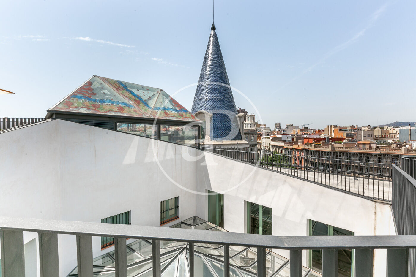 La zona de dia consta d'un lluminós i ampli saló-menjador, amb cuina oberta, completament equipada amb electrodomèstics d'alta gamma, a més d'un lavabo de cortesia. La zona de nit consta de dues habitacions dobles amb armaris encastats, ambdues en suite i amb dutxa. Des d'elles s'accedeix a una meravellosa terrassa de 30 m², amb sofàs, per gaudir d'una tranquil·litat absoluta, enmig del barri de l'Eixample.