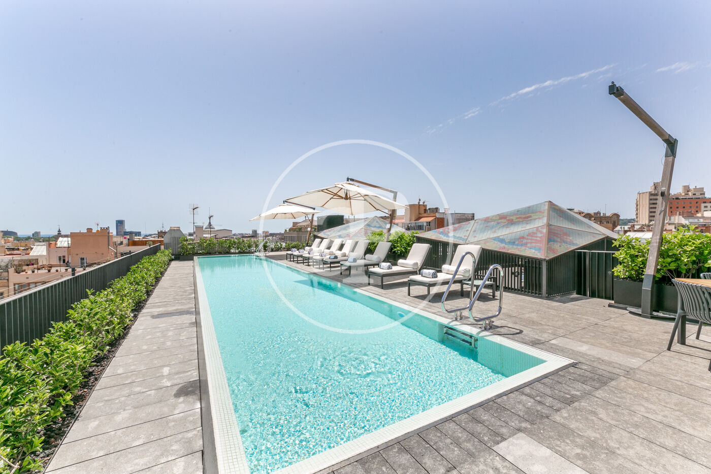 L'apartament compta amb dues zones comunitàries, una d'elles a la planta baixa inferior i l'altra a la terrassa superior de l'edifici. A la planta baixa inferior trobem una piscina coberta, amb hidromassatge, sala de tractaments, gimnàs, home cinema, zona de treball, celler, cuina professional amb menjador totalment equipada, ideal per a celebracions familiars o amb amics, a més de zona de bugaderia i traster. A la terrassa superior trobem una piscina a l'aire lliure amb gandules, des d'on es poden gaudir d'unes vistes a la ciutat úniques.