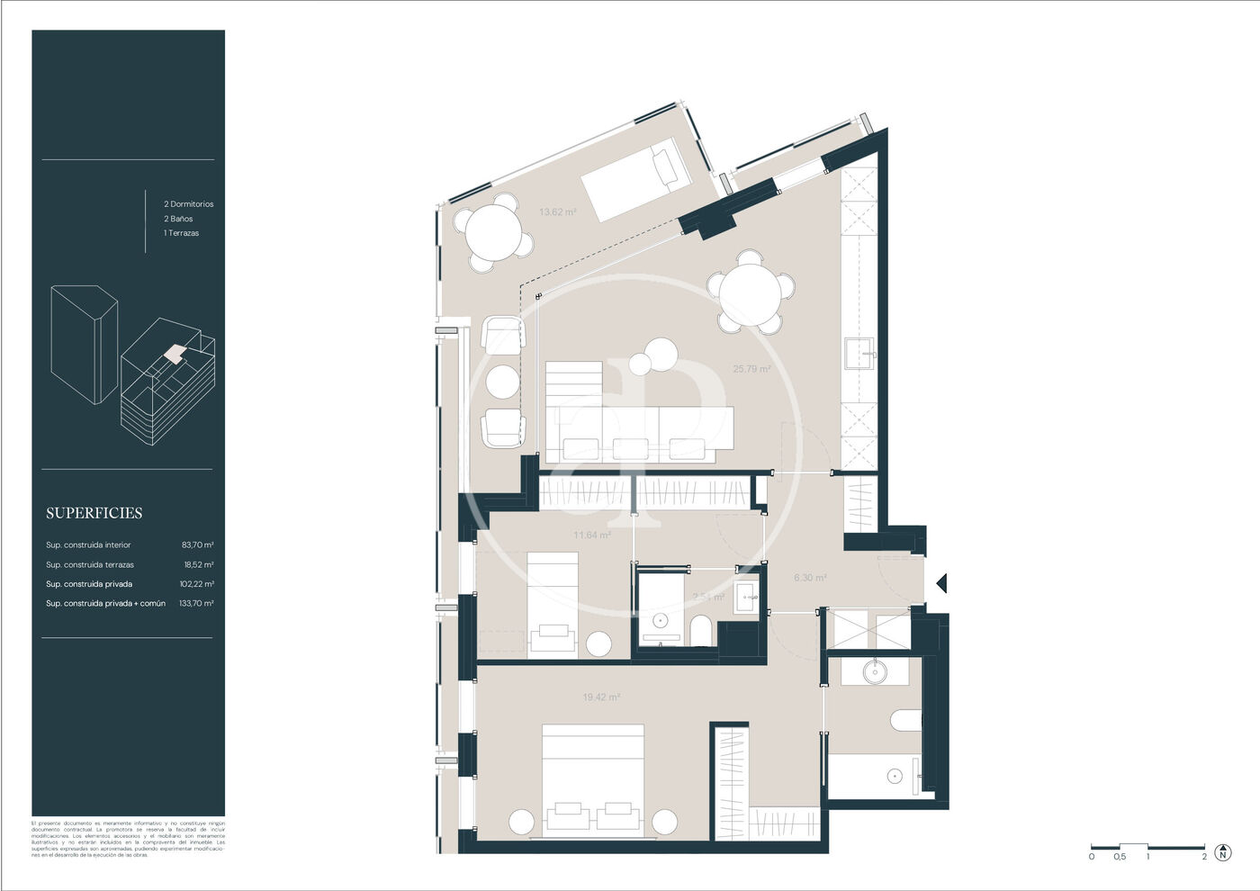 Aquesta exclusiva promoció d’obra nova estarà composta per dues torres de disseny avantguardista de catorze i onze plantes, que allotjaran 102 habitatges únics, tots ells accessibles a través d’un lobby espectacular que marca la identitat del projecte des del primer instant.