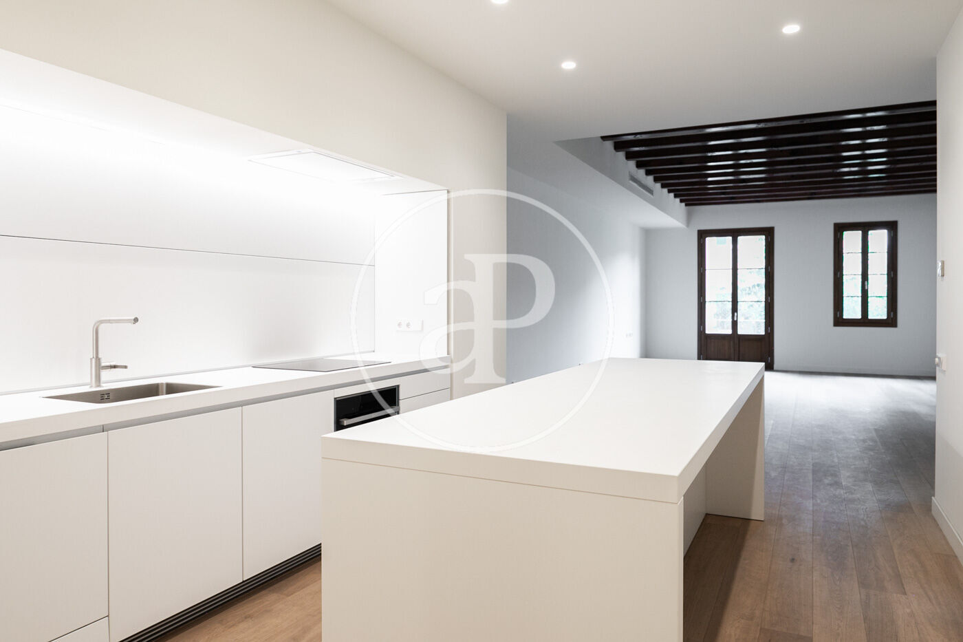 La distribució és funcional i equilibrada: gran saló menjador amb finestrals, cuina oberta de disseny totalment equipada, tres dormitoris dobles (un d’ells en suite amb vestidor), dos banys complets i zona de bugaderia.