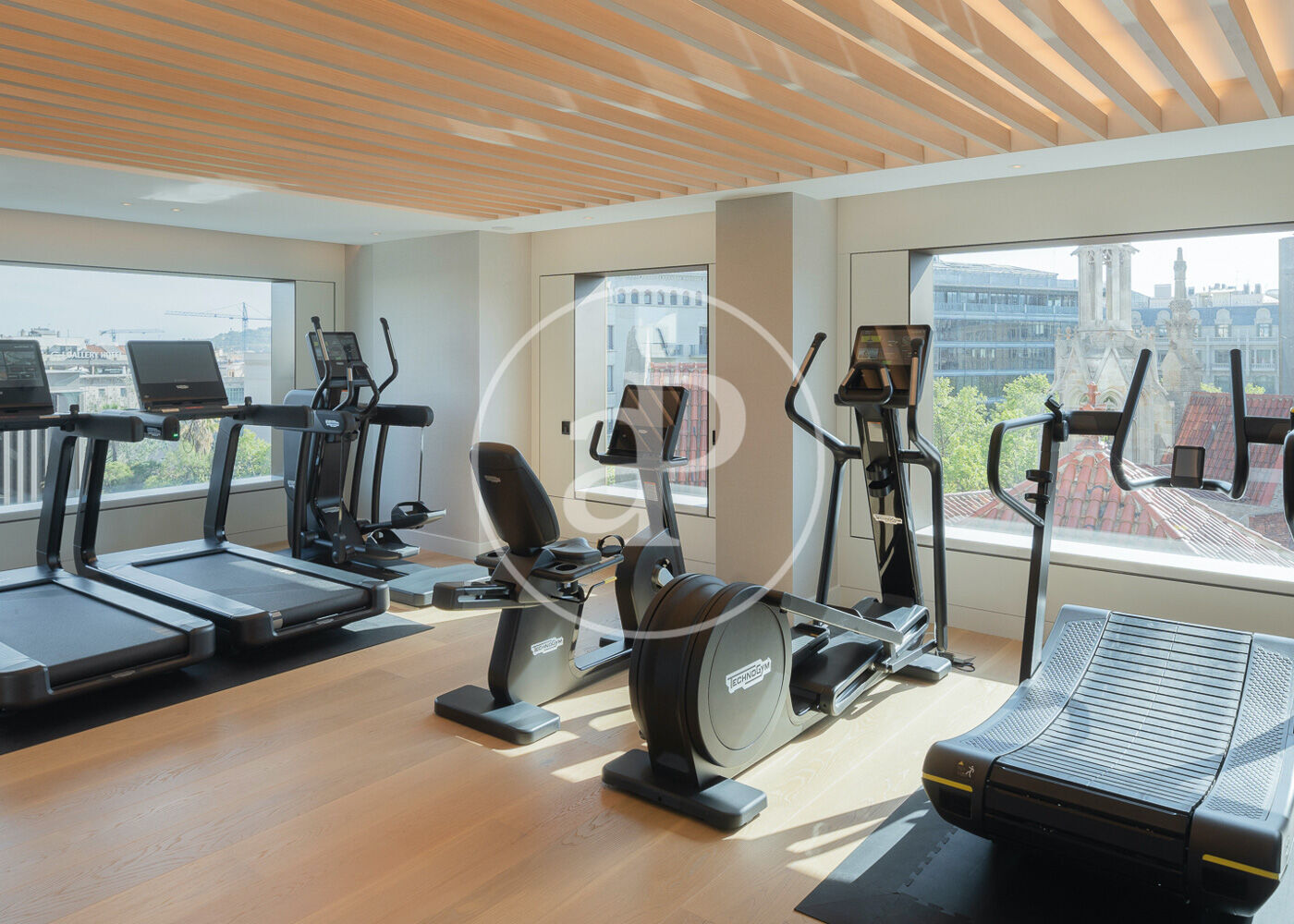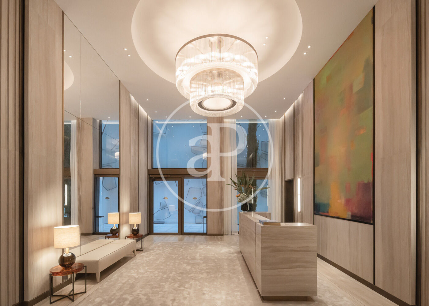 , piscina, gimnàs, plaça d’aparcament, aire condicionat, armaris encastats, bugaderia, balcó, calefacció, consergeria i traster.