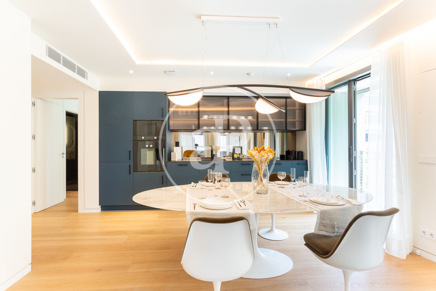 La zona de dia destaca per un lluminós saló-menjador amb finestrals de gran format, que inunden l’espai de llum natural, i una cuina moderna i totalment equipada, oberta a la zona social per gaudir de moments únics en companyia.
