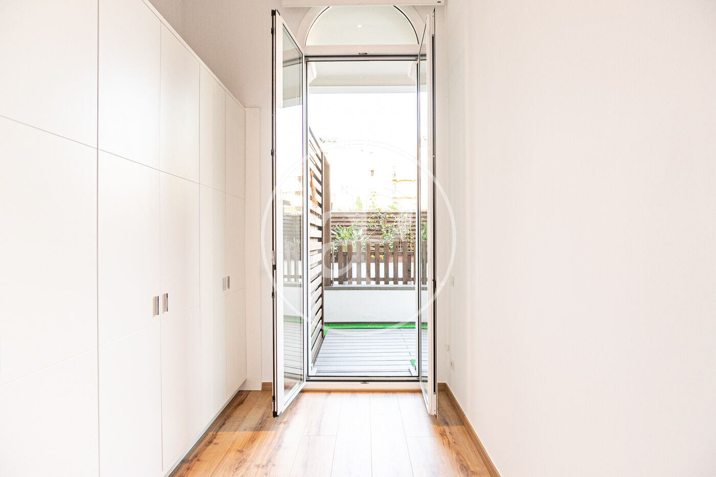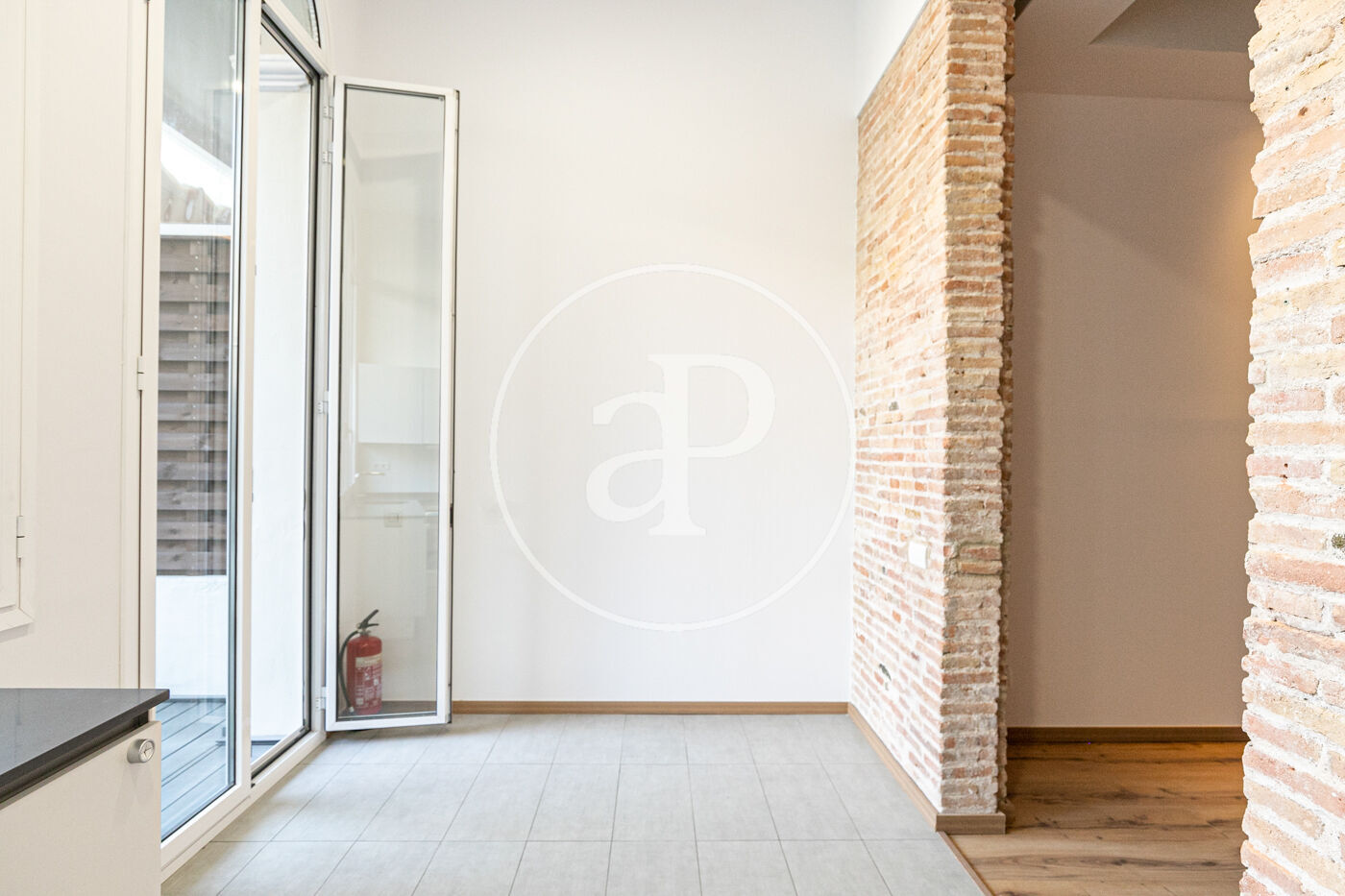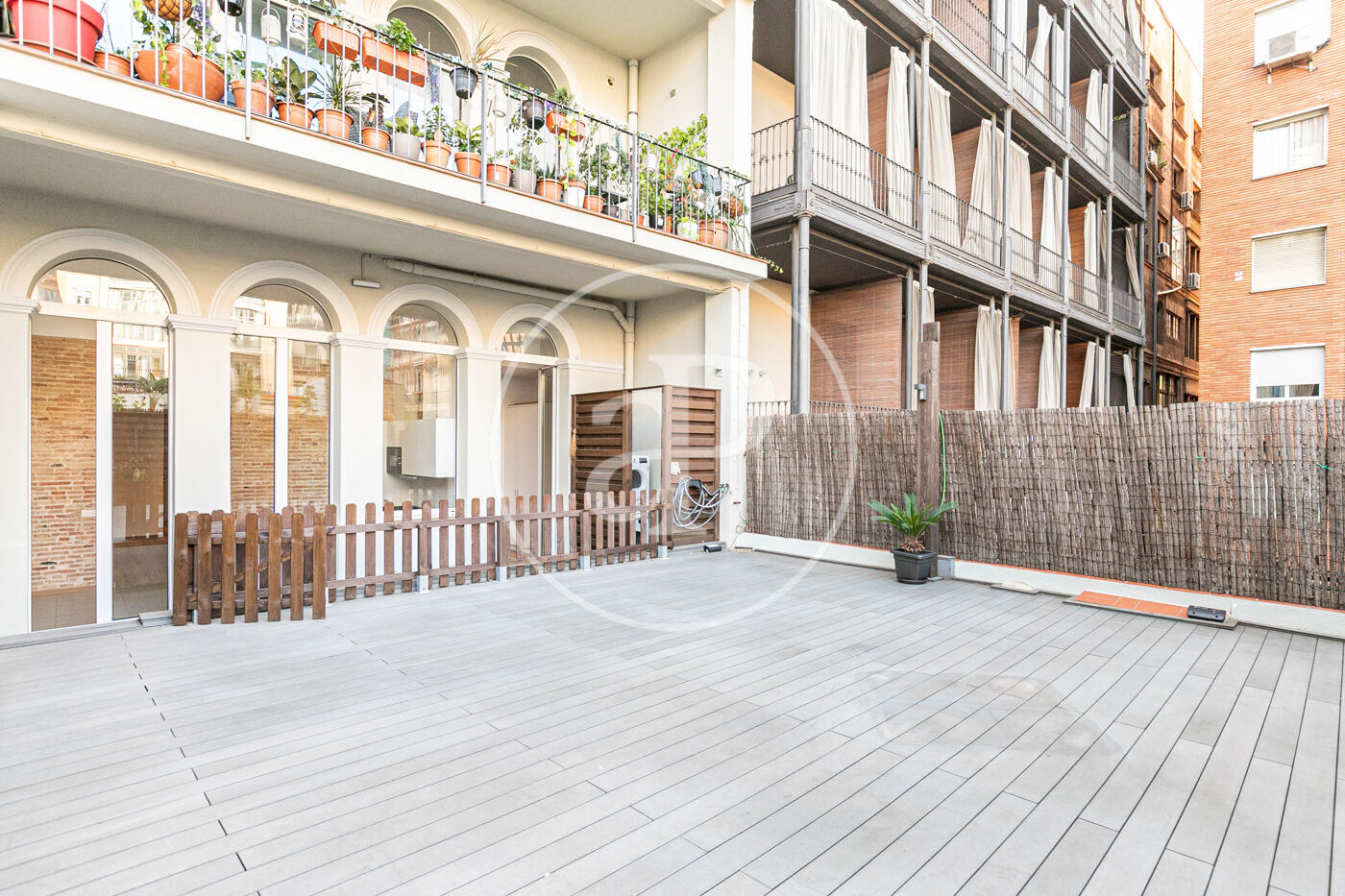 Situat en Plaza Urquinaona, al costat del Tall anglès i pròxim al Passeig de Gràcia es troba aquesta propietat de 100m2 i 50m2 de terrassa, completament reformada amb materials de gran qualitat, combinat amb excel·lent gust i disseny.