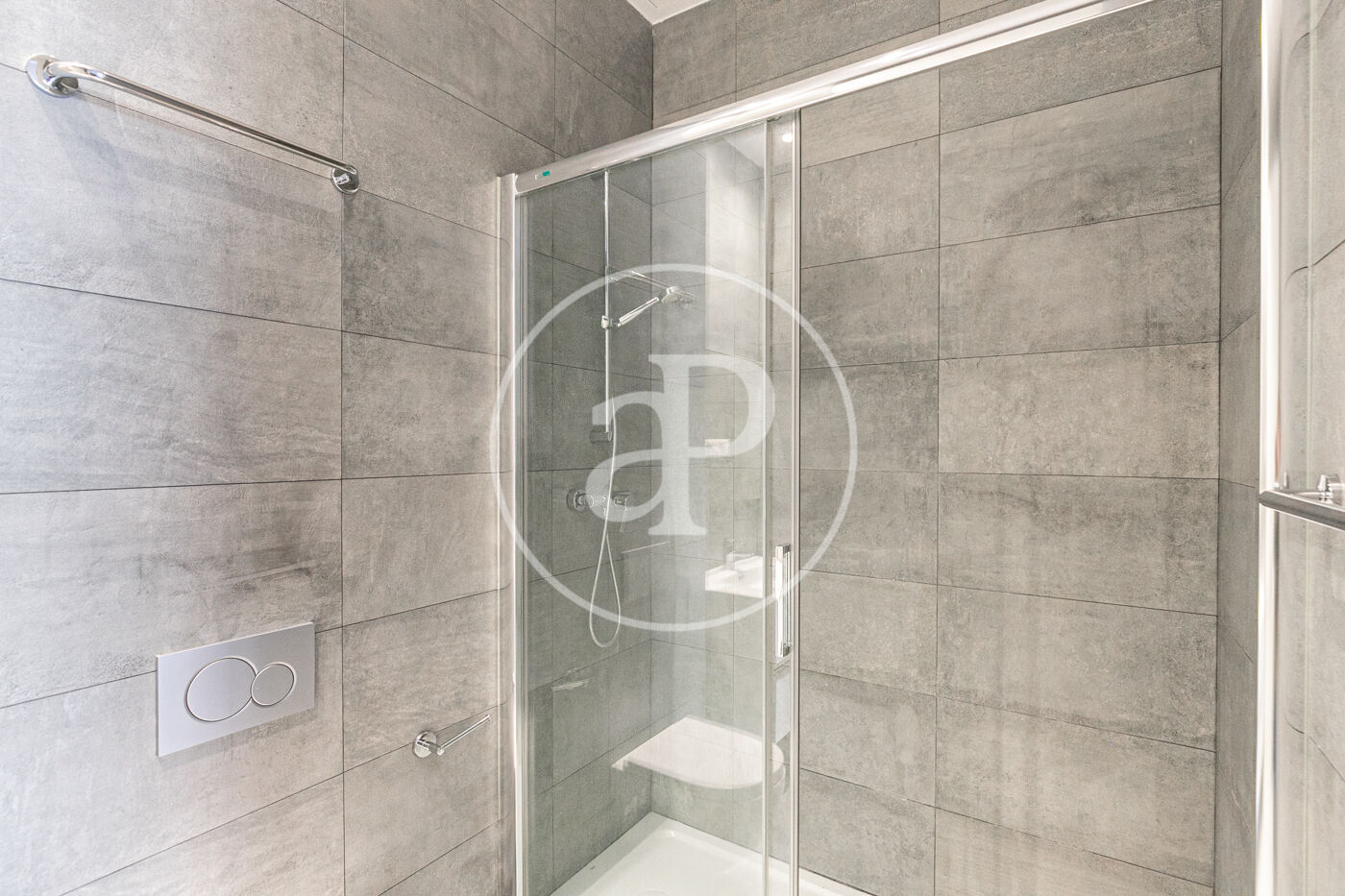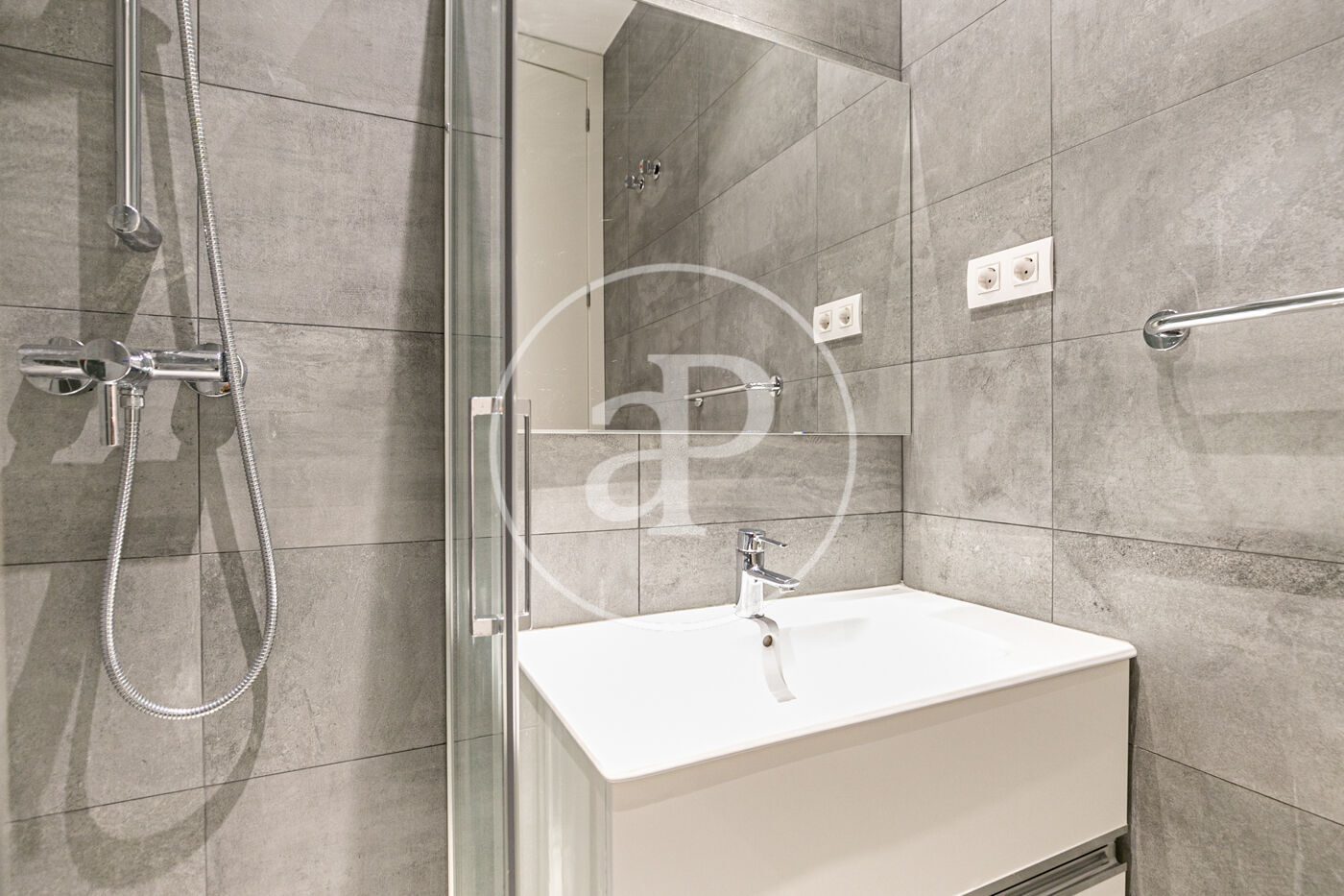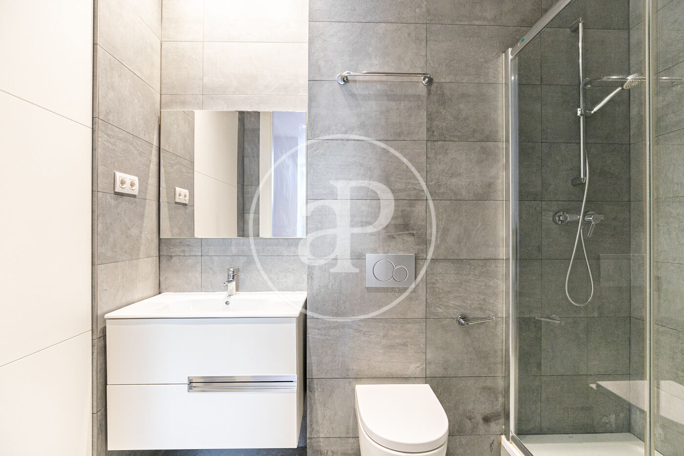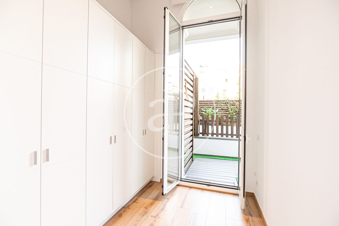 Situat en Plaza Urquinaona, al costat del Tall anglès i pròxim al Passeig de Gràcia es troba aquesta propietat de 100m2 i 50m2 de terrassa, completament reformada amb materials de gran qualitat, combinat amb excel·lent gust i disseny.